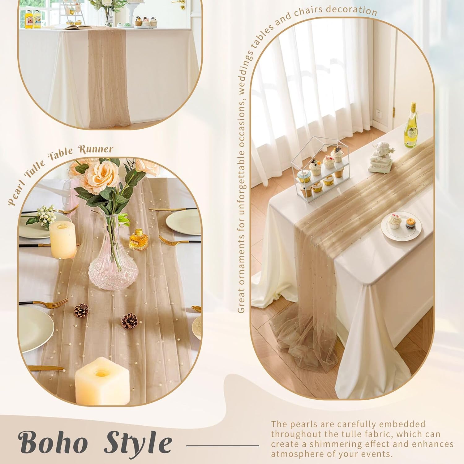 - 【Package Include】 You will receive 6 pieces of 29 x 120 inches pearl tulle table runners, the quantity is sufficient for your daily use and replacement needs, it's long enough to fit different size tables and chairs, These tulle table runner with pearls are skin-friendly. There are lots of different colors for you to choose. Perfect to decorate your tables.