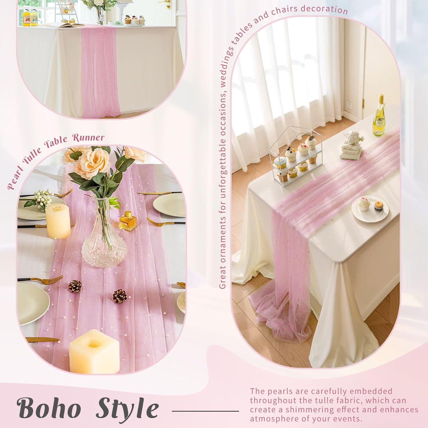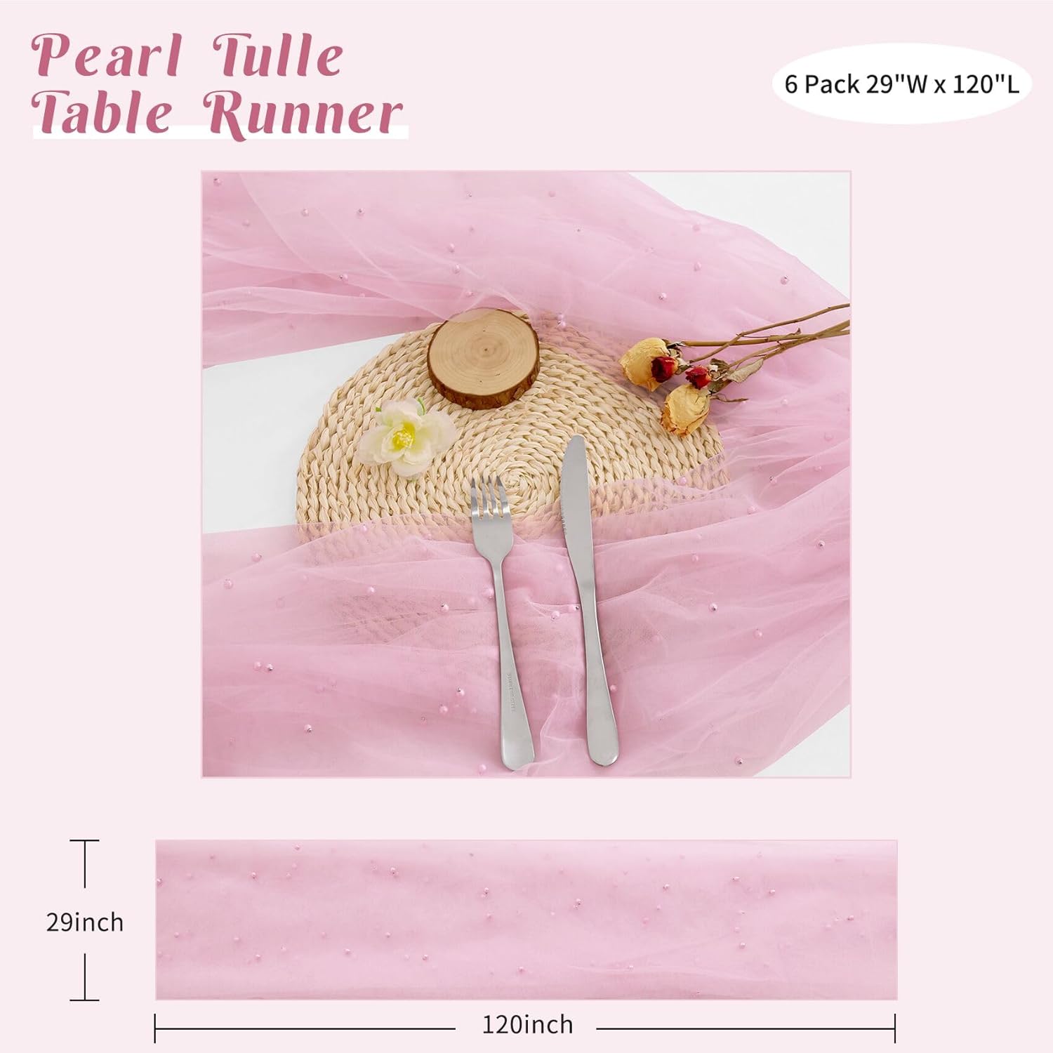 - 【Package Include】 You will receive 6 pieces of 29 x 120 inches pearl tulle table runners, the quantity is sufficient for your daily use and replacement needs, it's long enough to fit different size tables and chairs, These tulle table runner with pearls are skin-friendly. There are lots of different colors for you to choose. Perfect to decorate your tables.