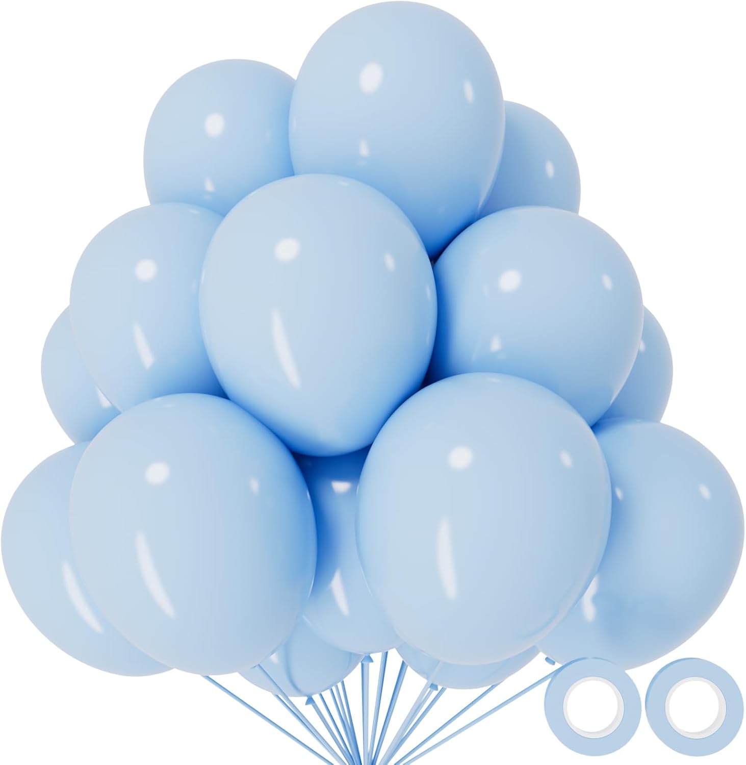 - Order pastel blue ballons you will get 110pcs 12 inch pastel blue baloons and 2 rolls of ribbons in random colors.