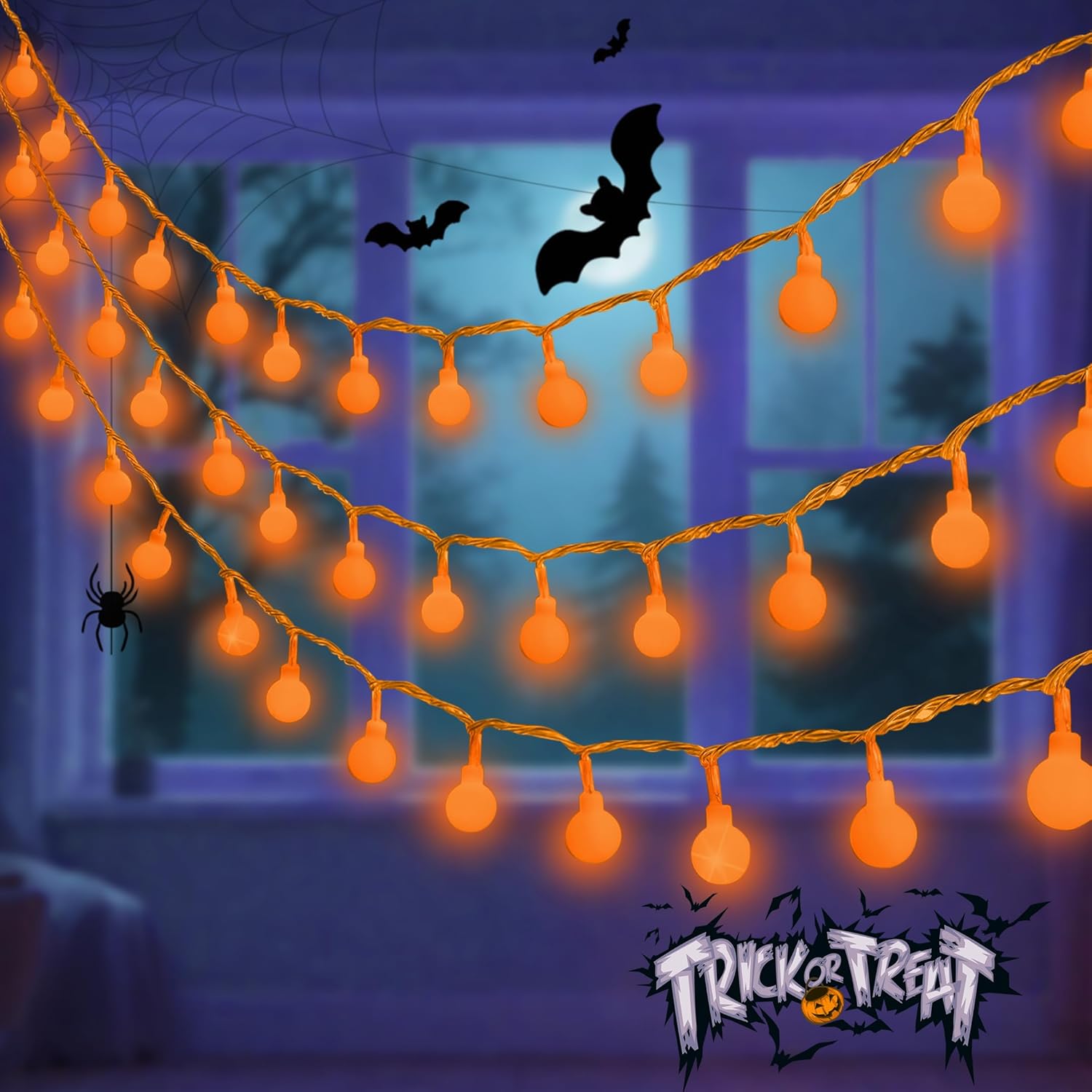 - [End-to-End Connectable]End-to-end connection that allows up to 5 strands connected together to illuminate a wider range. These mini Halloween globe light emit a soft orange glow, adding a festive touch and creating memorable Halloween nights at home