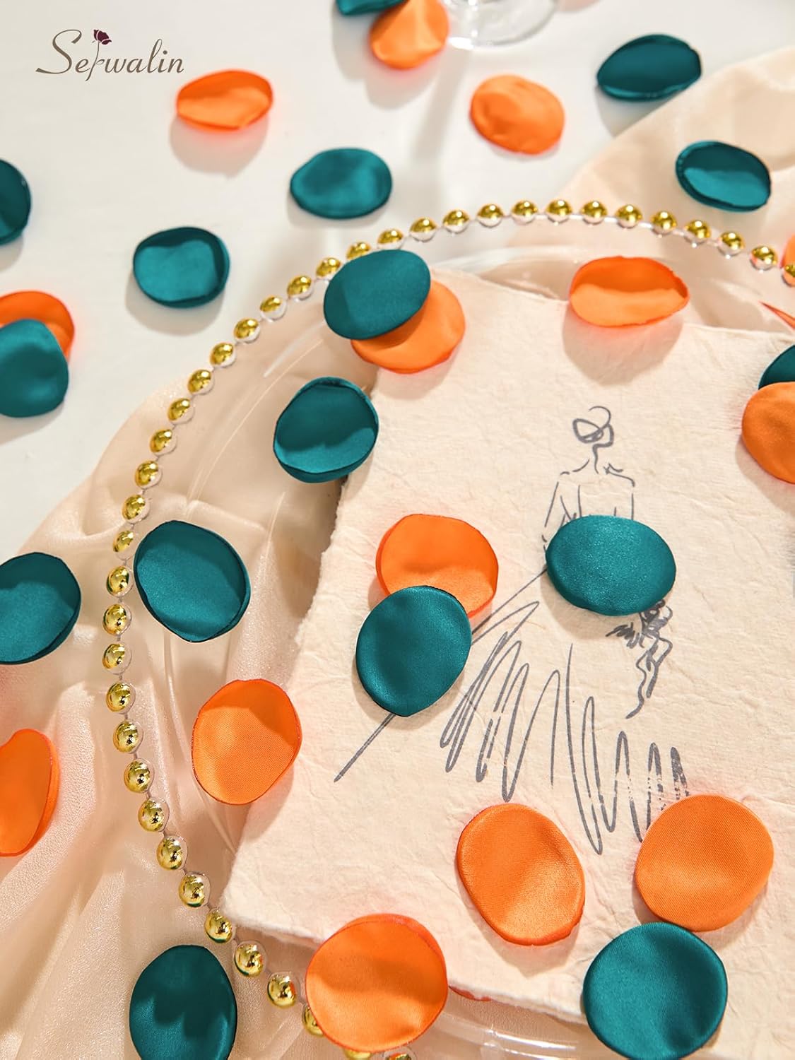 Serwalin 300Pcs Silk Rose Petals Fake Flower Petals Green Orange Artificial Rose Petals for Weddings Proposal Flower Girl Petals Aisle Flower Girl Basket Runner Bridal Shower Table Decor