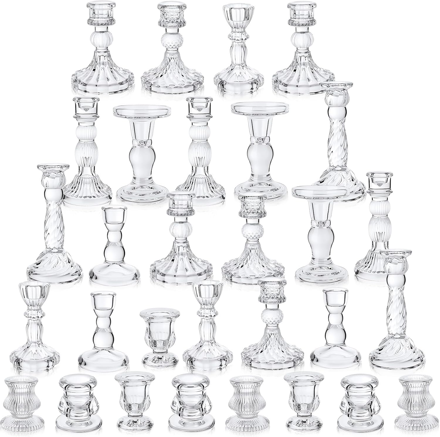 - Package Contents: you will receive 30 pieces 10 style glass candle holders in different sizes, which have different heights, smooth shapes and smooth finishes; The candlestick holder add a clean, simple, and elegant aesthetic to any space, it is suitable for a variety of candles