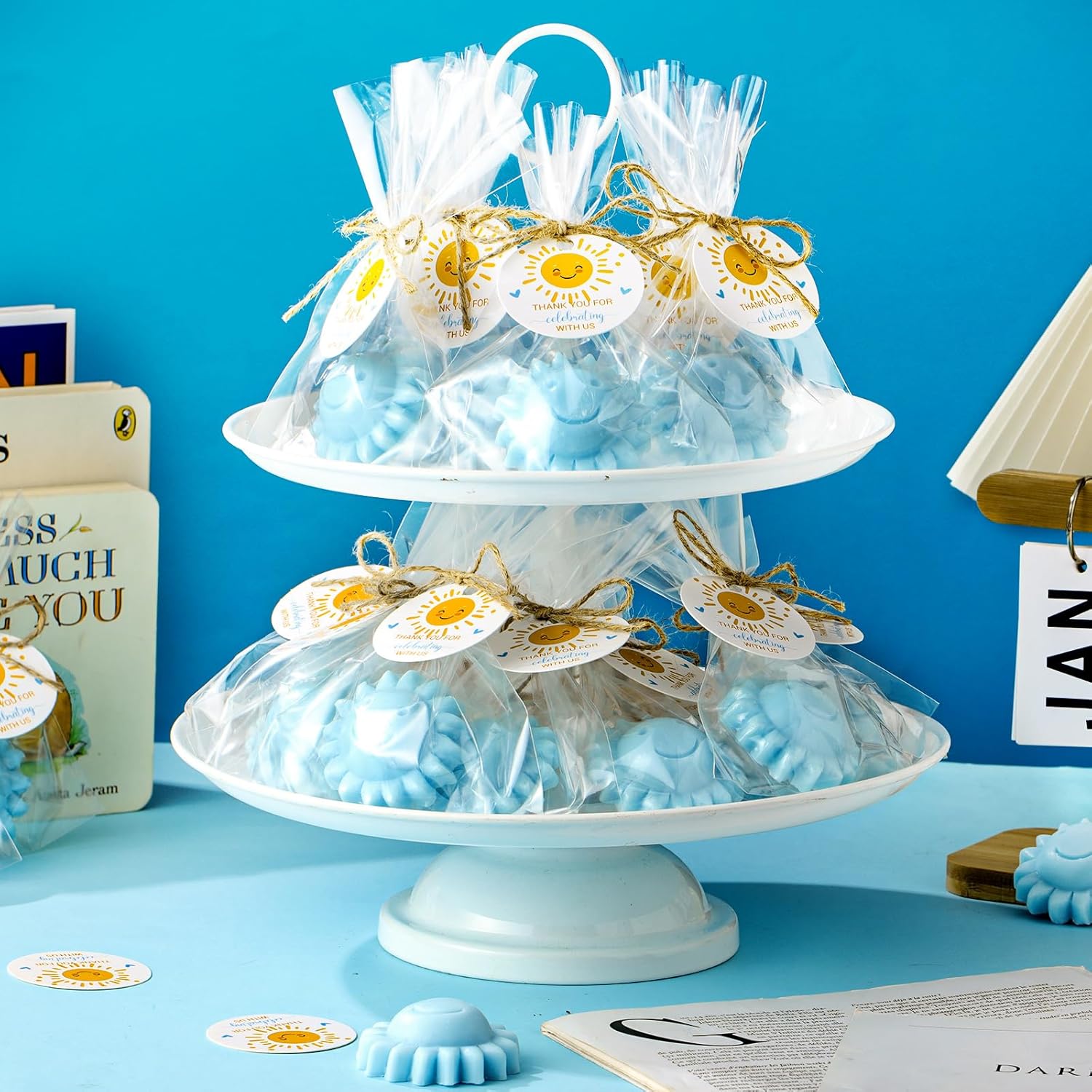 - Package Includes: there are 40 baby shower decorative soaps, and each soap comes individually wrapped with opp bags and tied with colored ribbon, easy for carrying and preservation, can be used as Sunshine Party, Here Comes the Son party or wedding favors, baby shower favors and other baby theme party favors