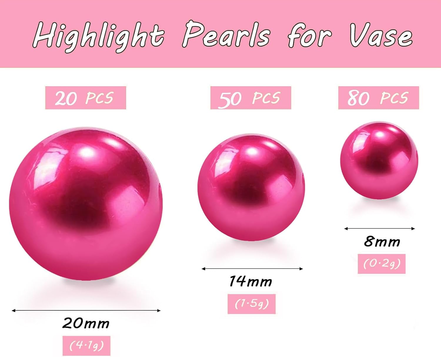 150Pcs Hot Pink Polished No Hole Faux Pearl Beads for Vase Filling Decorations, Plastic Pearls Vase Fillers, Table Scatters, Wedding Centerpiece, Home Decor, 8/14/20 mm