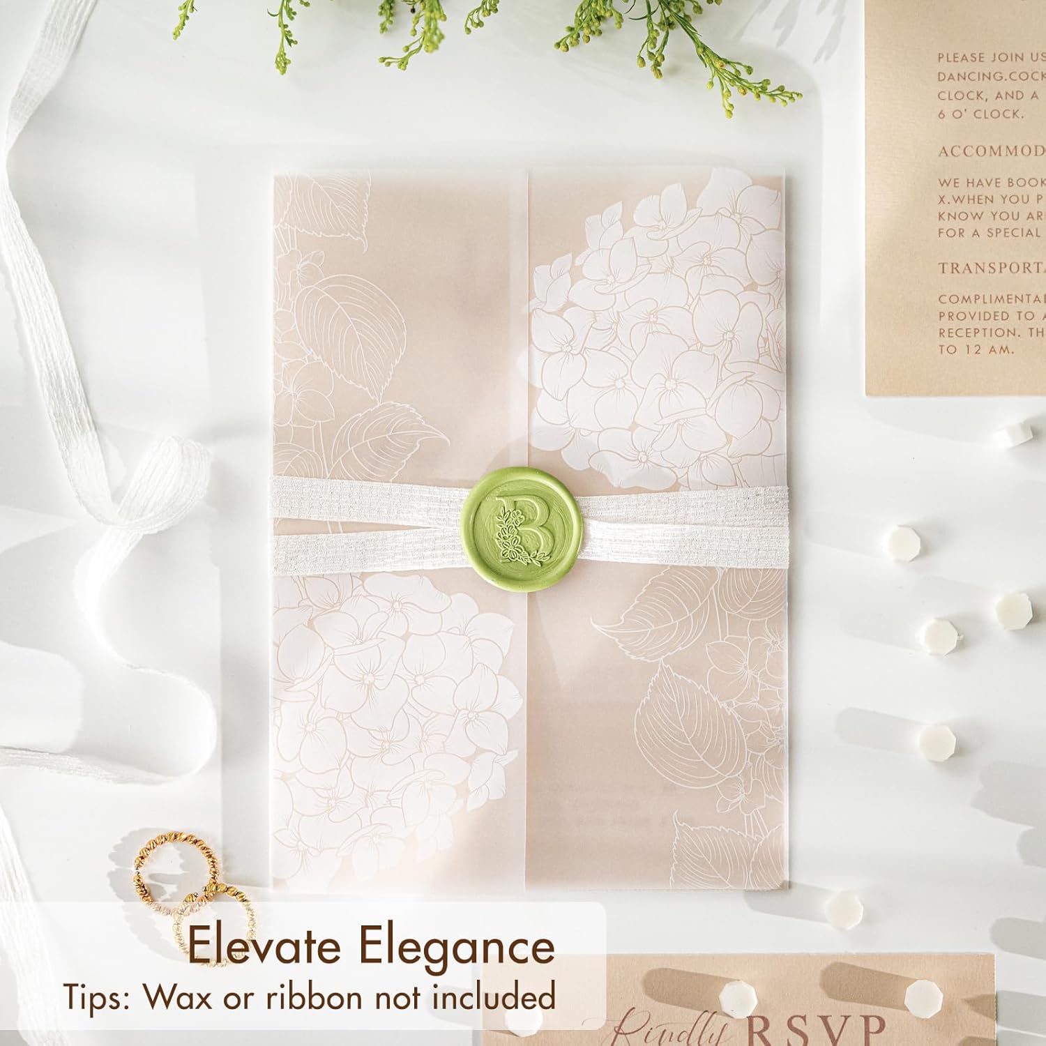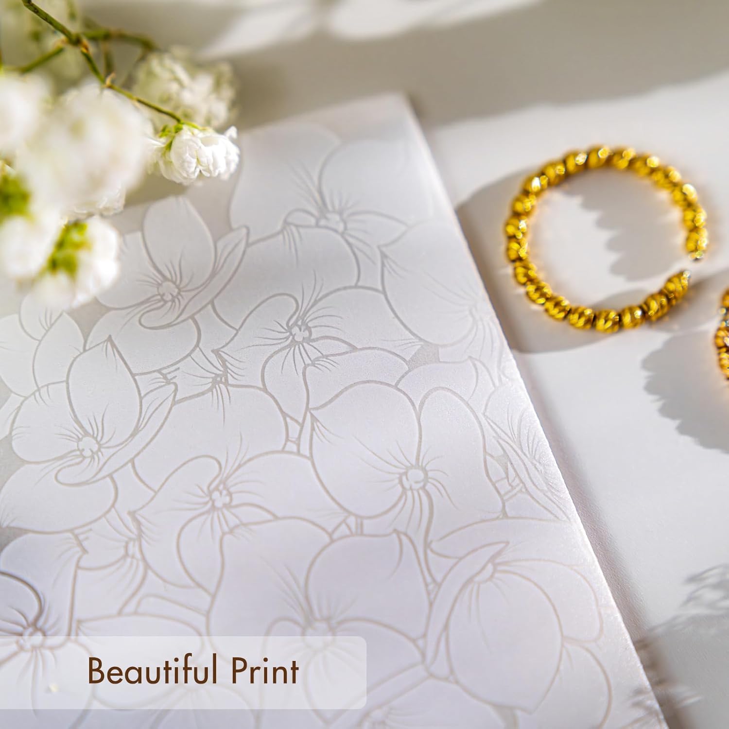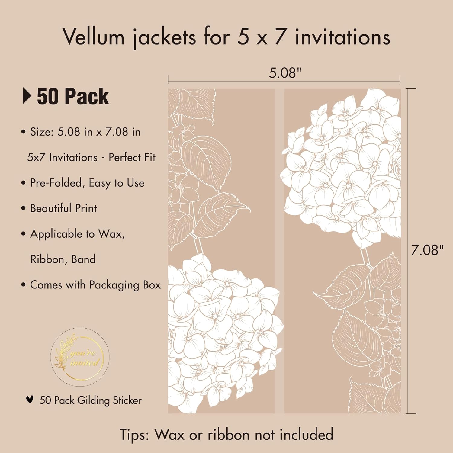 50 Pack Pre-Folded Vellum Jackets for 5x7 Invitations,AZAZA Elegant Translucent Invitation Sleeves,115GSM Vellum Jackets 5x7, Wedding Invitation Accessories, for Weddings Birthdays, Hydrangea Floral