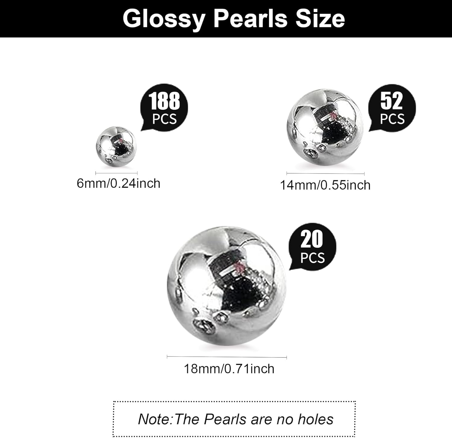 - Multi-Size Pearl Beads - Includes 260pcs metallic Silver pearl beads in three versatile sizes (6mm, 14mm, 18mm) for dynamic layering and a luxurious effect in vases or bowls
