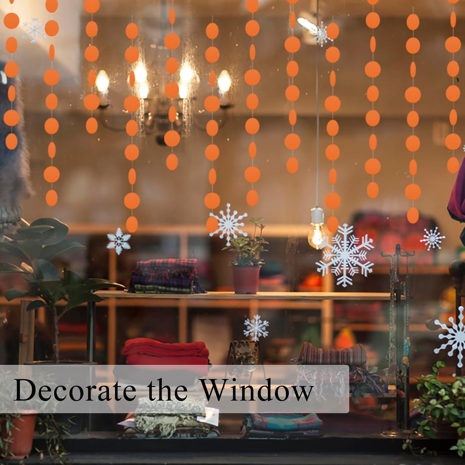 MerryNine Paper Garland 5 Pack, 65 Ft Glitter Paper Garland Circle Dots Hanging Decor, Banner for Baby Shower, Birthday, Nursery Party Decor (Orange)