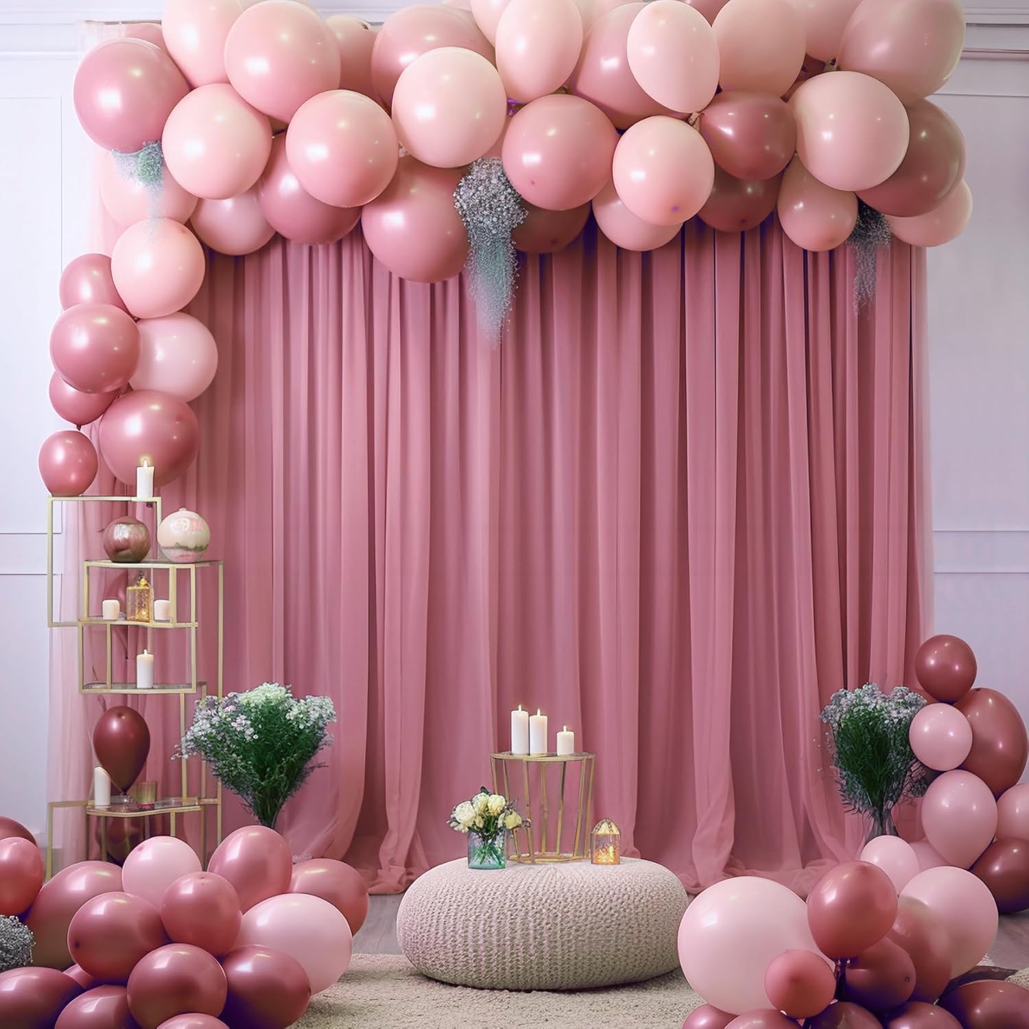 10ft x 10ft Dusty Rose Backdrop Curtains, Wrinkle-Free Sheer Chiffon Fabric Photo Backdrop Drapes for Wedding Arch Party Ceremony Stage Photography Birthday Decorations