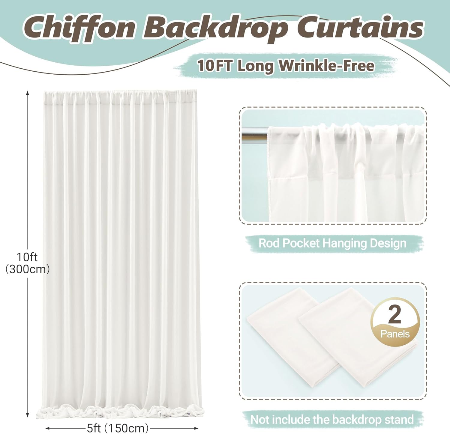 10ft x 10ft Beige Backdrop Curtains, Wrinkle-Free Sheer Chiffon Fabric Photo Backdrop Drapes for Wedding Arch Party Ceremony Stage Photography Decorations