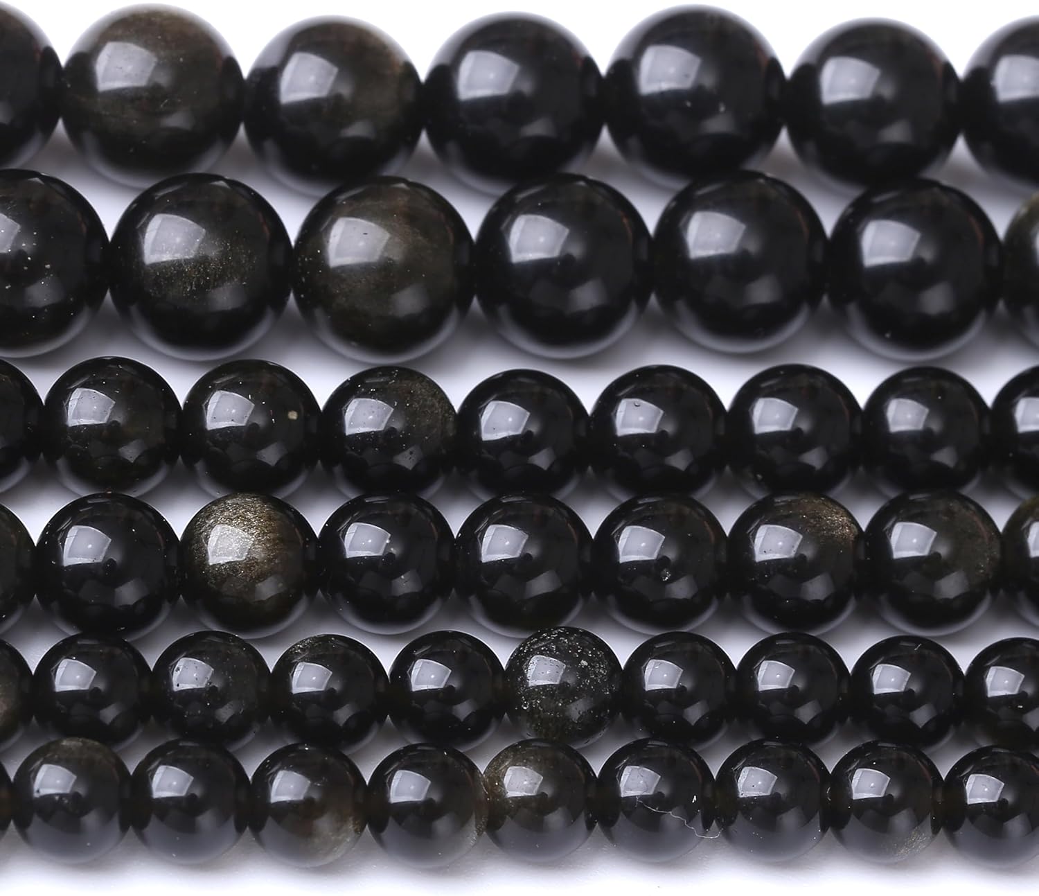 Gold Obsidian Stone Beads for Jewelry Making DIY Craft Gemstone Beads Kit (10mm, 35pcs) Cosmic Crystal Pebbles for Bracelets, Necklaces, Home Decor