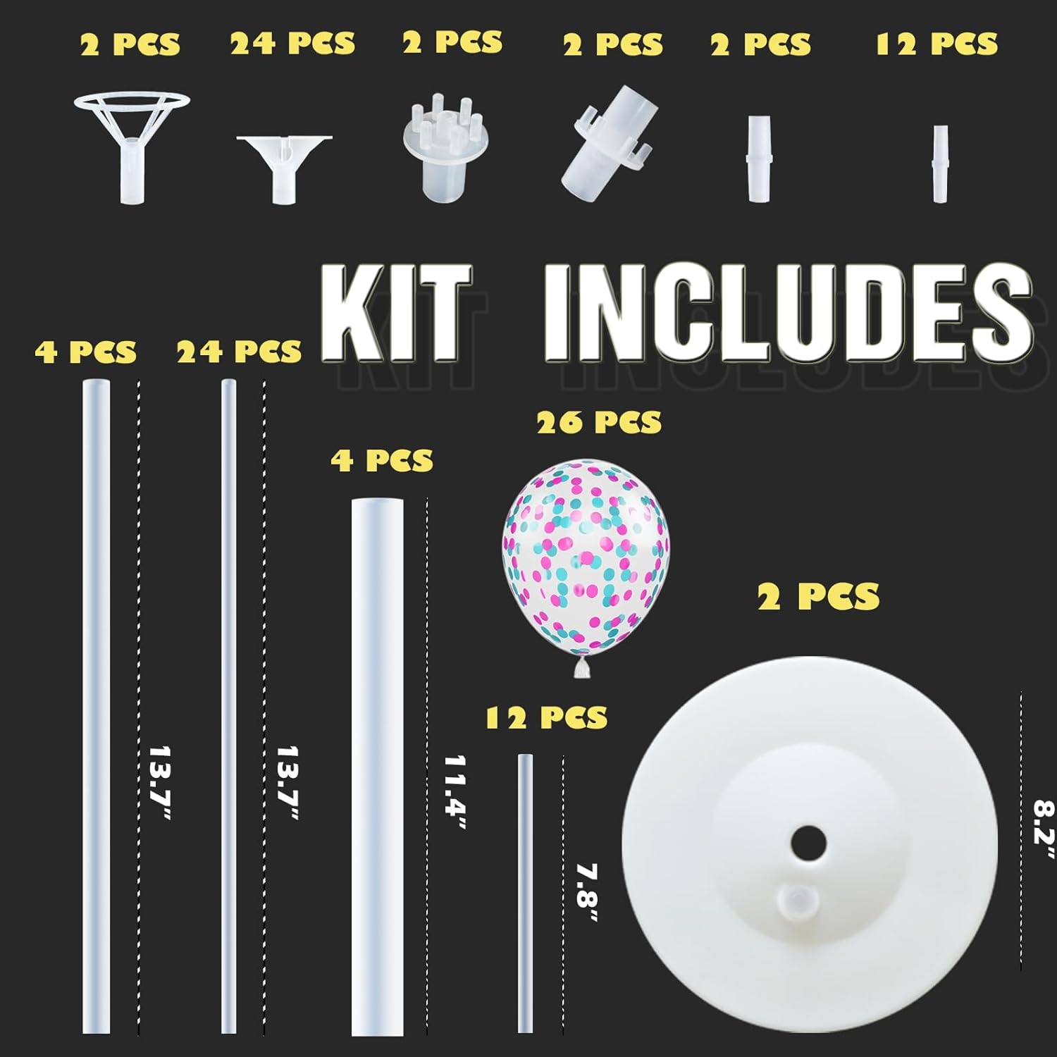 - ★Party Upgrade - These latex balloons includes 26pcs , 2 Sets of Balloon Stand Kits, Includes 44 Unconnected Balloon Sticks, 24 Cups, 2 Big Cups, 4 of Which Are Tube Connectors, 12 Mini Union Joints,2 Union Joints,26pcs Balloons,2 Base.Each Balloon Stand Comes in 2 Different Height Sizes.Perfect Size for Table&Ground.