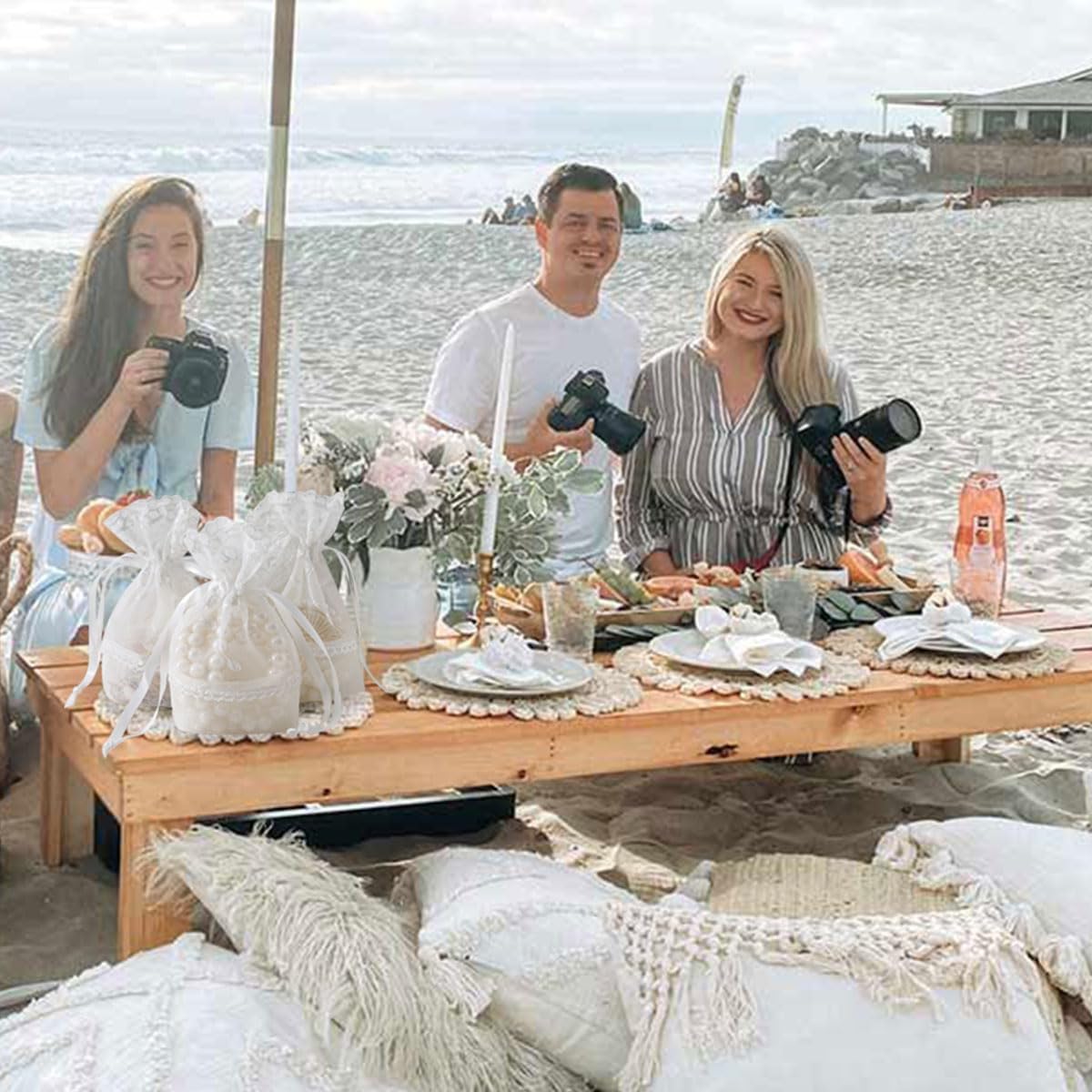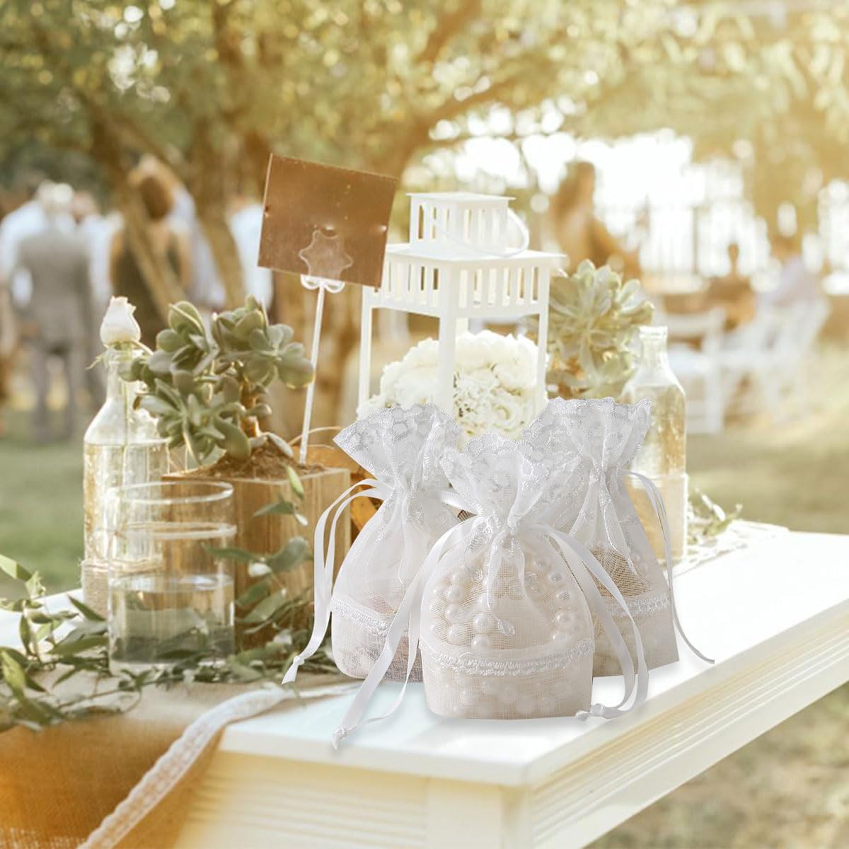 - ๐บ๐๐Material:These lace gift pouch bags are made of bamboo knot yarn,polyester lace,lightweight,durable and washable.Can act as bags or candy bags for festival,wedding and party.