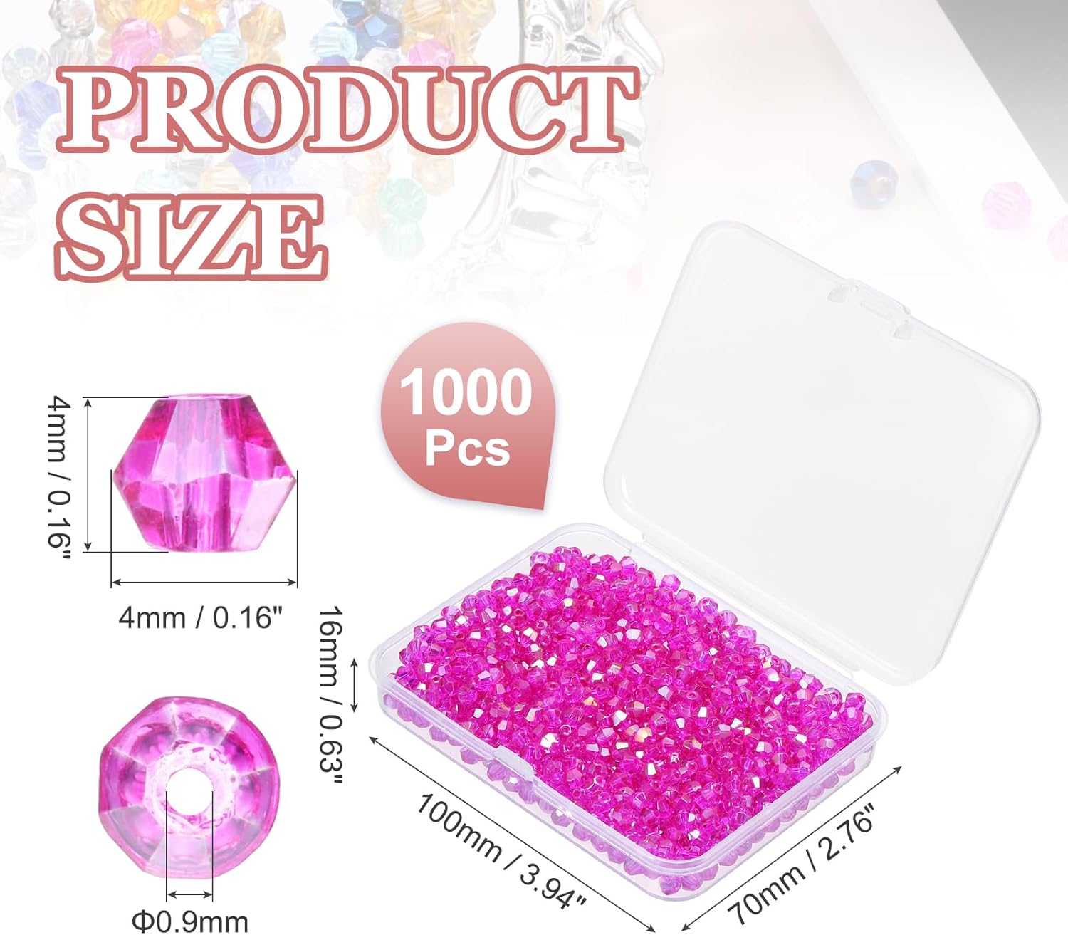 - Color: Rose Red AB; Diameter: 4mm / 0.16 Inch; Packing List: 1000 Pcs x Bicone Crystal Beads