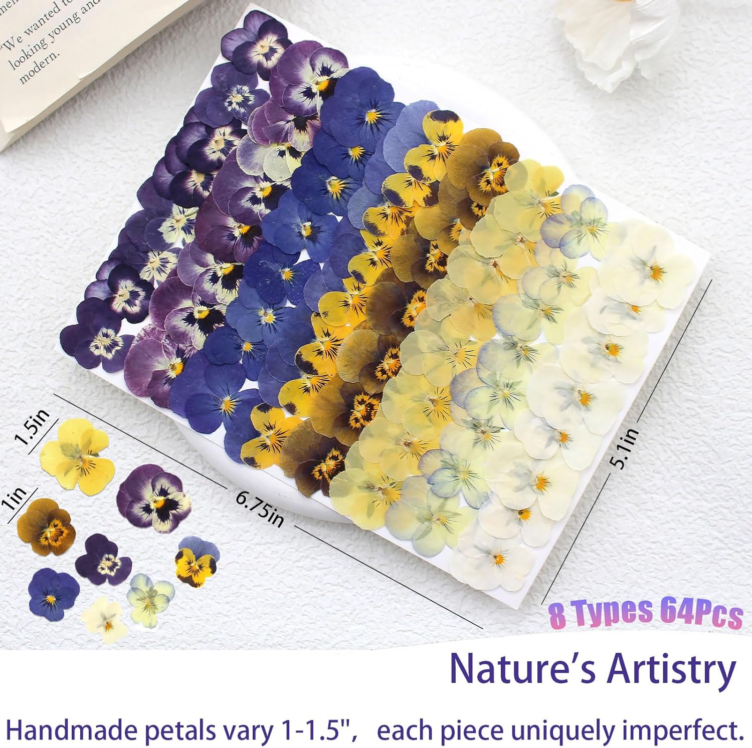 - Premium Natural Viola Pressed Flowers: Handpicked from select gardens, these dried pressed flowers retain natural textures & vibrant hues via air-drying. Each unique petal makes ideal pressed flowers for crafts, perfect for one-of-a-kind designs