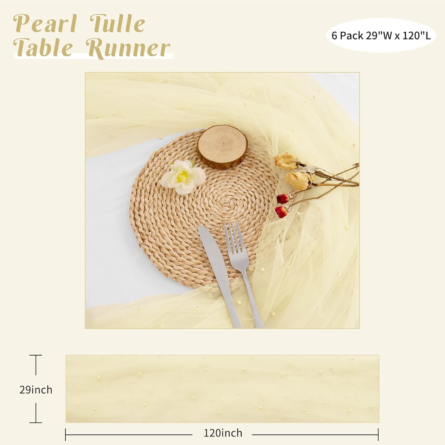 - 【Package Include】 You will receive 6 pieces of 29 x 120 inches pearl tulle table runners, the quantity is sufficient for your daily use and replacement needs, it's long enough to fit different size tables and chairs, These tulle table runner with pearls are skin-friendly. There are lots of different colors for you to choose. Perfect to decorate your tables.