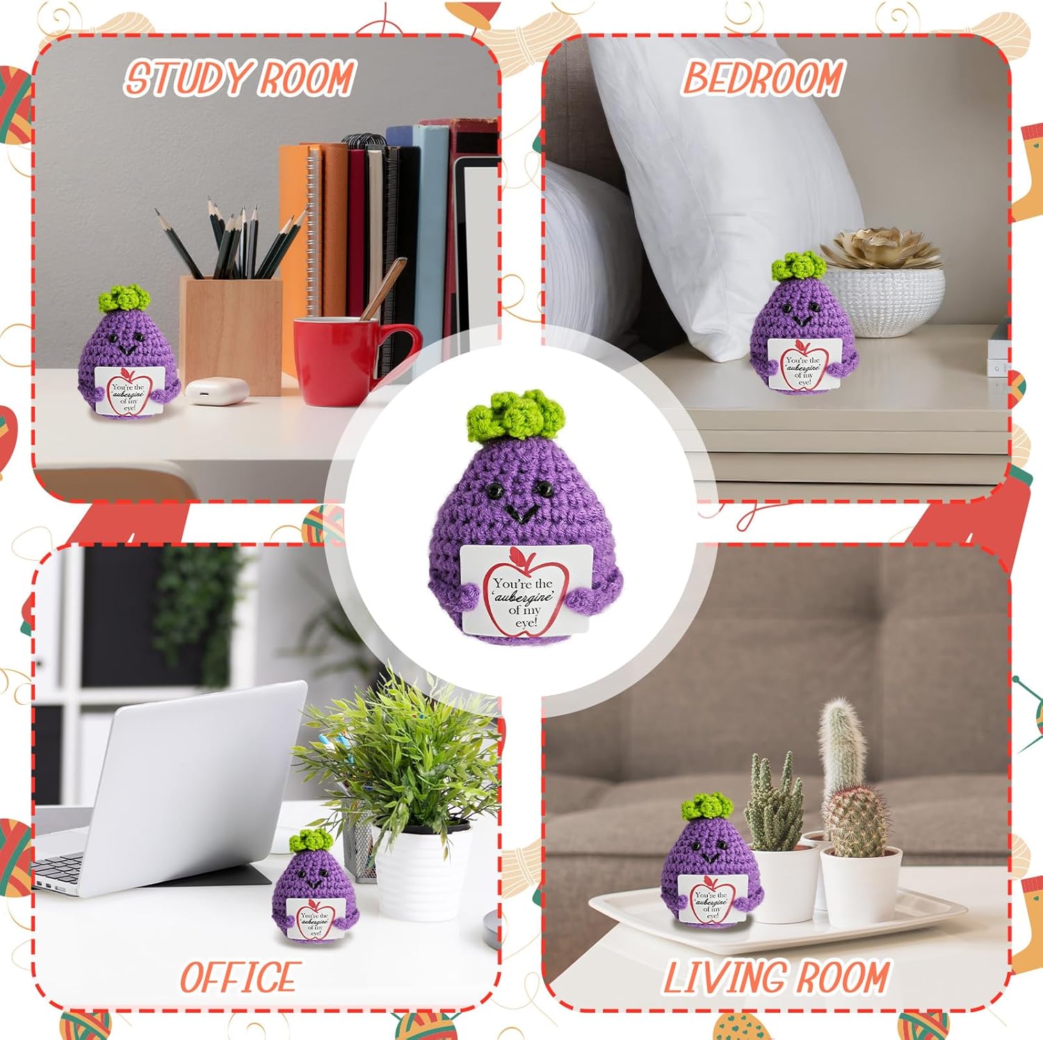 Emotional Support Crochet,Positive Crochet Eggplant-You're The Aubergine of My Eye,Handmade Crochets Eggplant Birthday Gift for Friend,Besties,Brother,Customized Graduation Gift,Funny Stuff