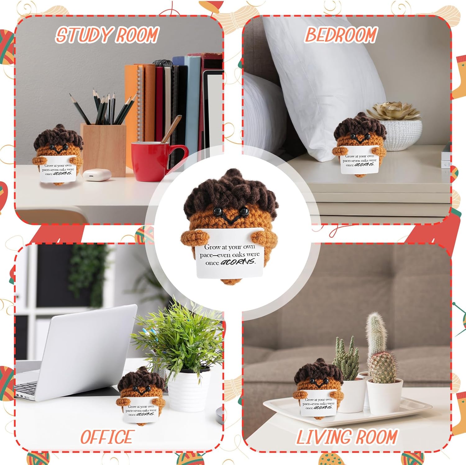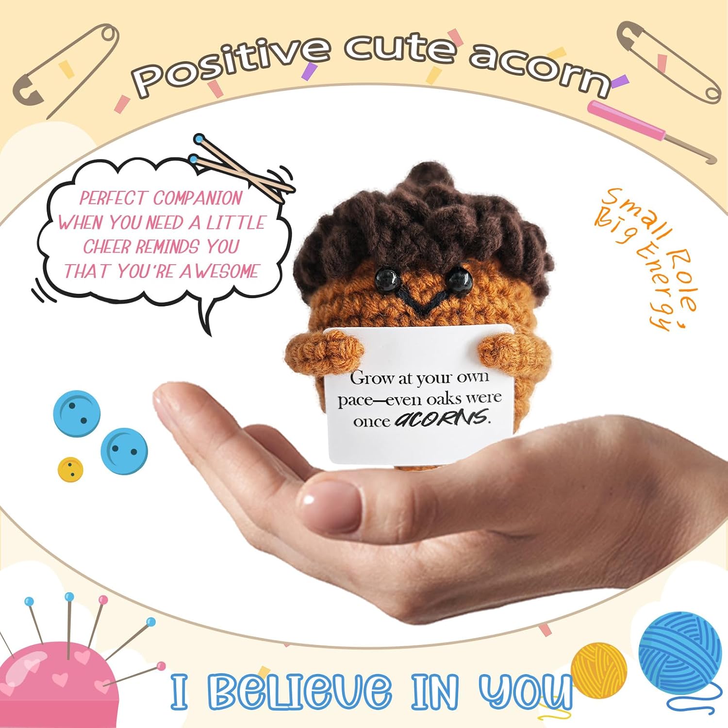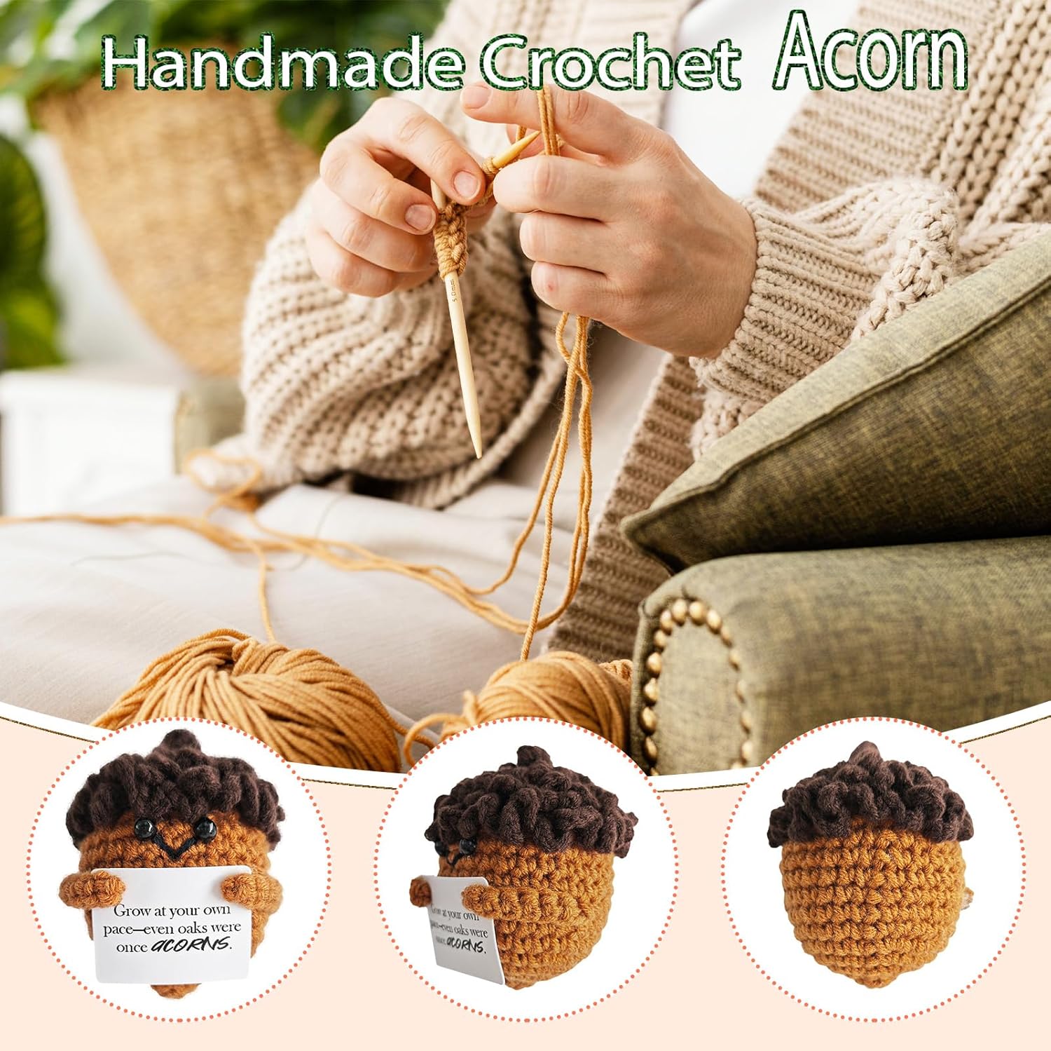Emotional Support Crochet,Cute Acorn Crochets Pattern,Handmade Crochet Acorn Birthday Gift for Friend,Besties,Brother,Customized Graduation Gift,School Start Gifts