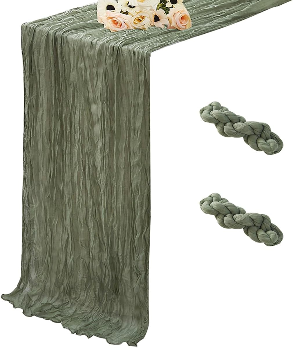 Sage Green 2 Pack Cheesecloth Table Runner 120 Inch 10 FT Boho Rustic Gauze for Wedding Baby Shower Party Farmhouse Summer Home Decor Washable