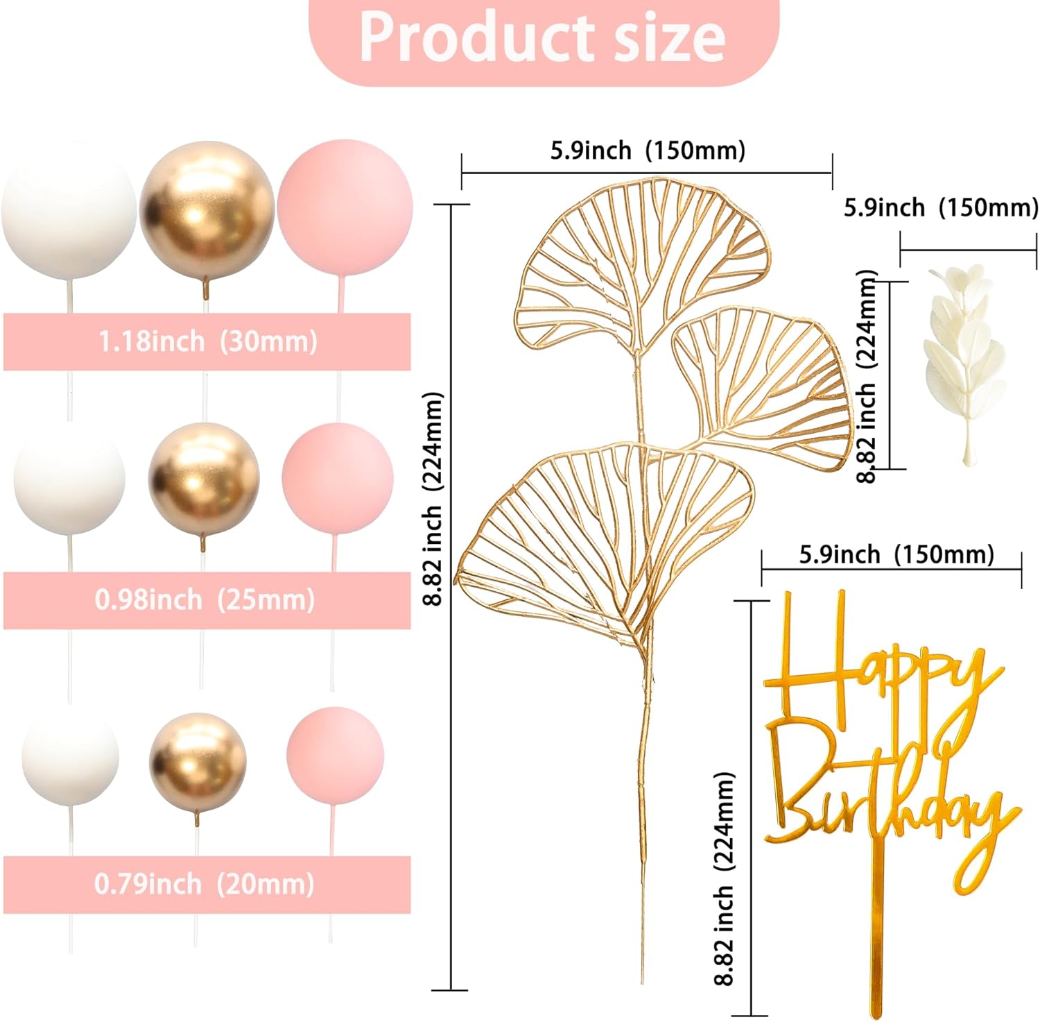 - -Package included: 1Pc Acrylic Cake Topper + 10Pc Grass + 45Pcs Mix Size Balls + 1Pcs Ginkgo Leaf. Size as the picture shows. These Balls Cake Topper Decorations are so chic and funny that make your Graduation party a big hit.