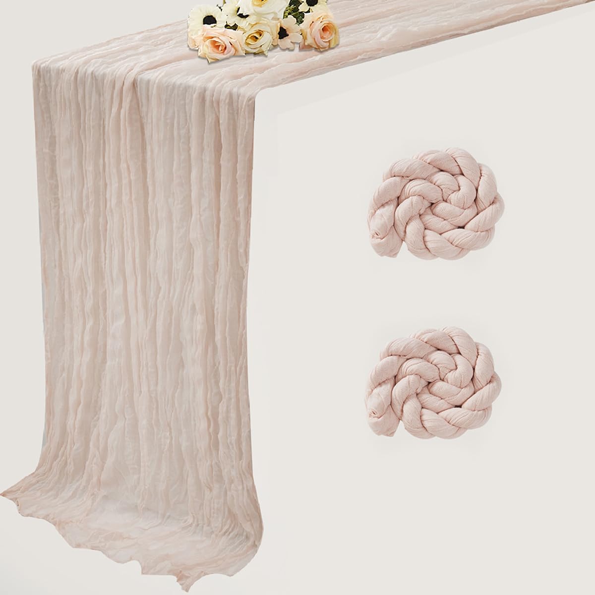 Dusty Pink 2 Pack Cheesecloth Table Runner 120 Inch 10 FT Boho Rustic Gauze for Wedding Baby Shower Party Farmhouse Summer Home Decor Washable