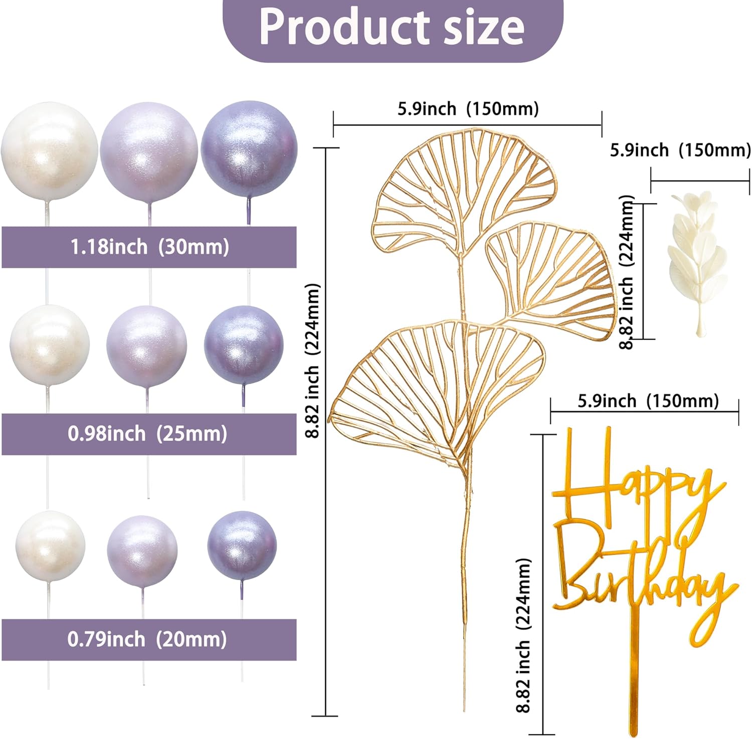 - -Package included: 1Pc Acrylic Cake Topper + 10Pc Grass + 45Pcs Mix Size Balls + 1Pcs Ginkgo Leaf. Size as the picture shows. These Balls Cake Topper Decorations are so chic and funny that make your Graduation party a big hit.