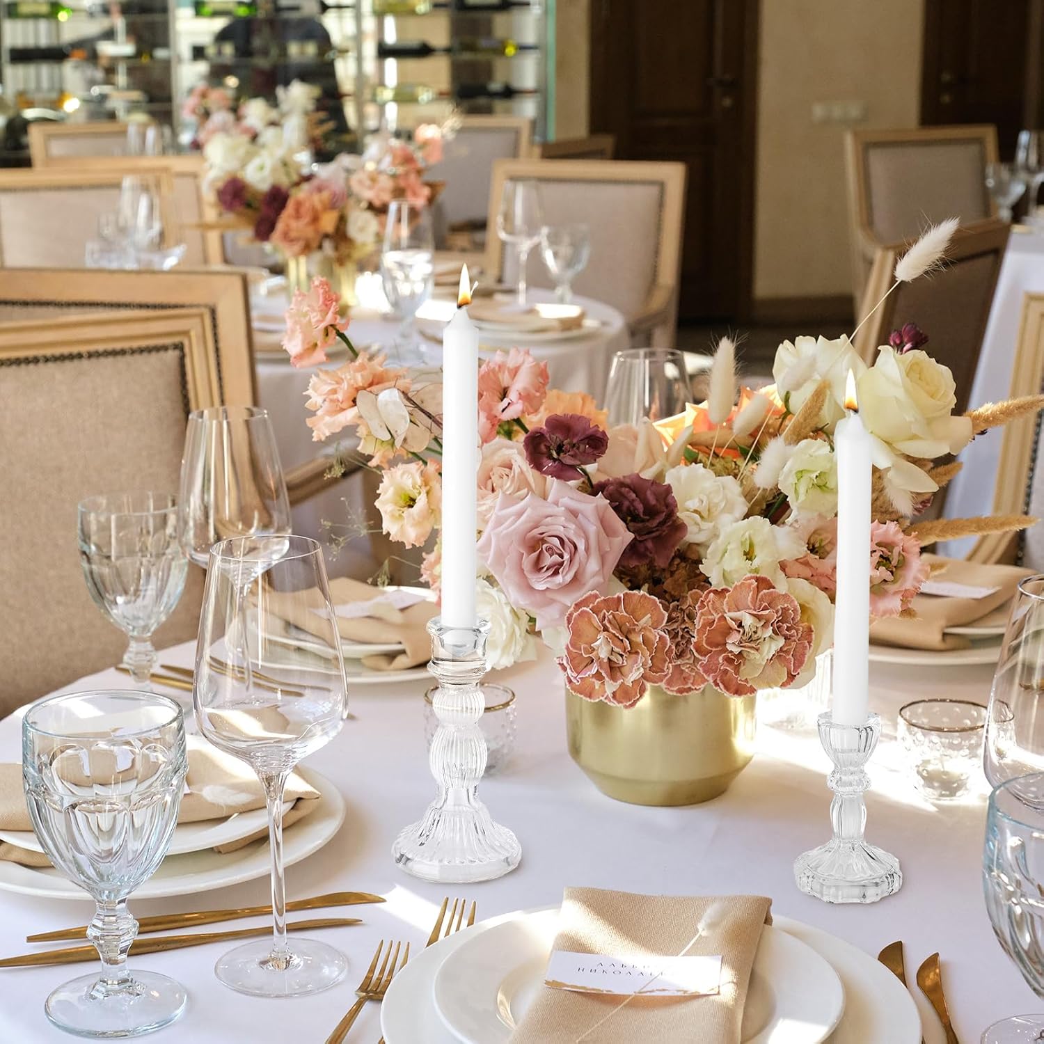 Mumufy 40 Pcs Glass Crystal Taper Candle Holders Clear Glass Candlestick Holder Fit 0.8 Inch Candles Crystal Decorative Candle Stand Centerpiece Table Wedding Dining Party (Classic,Clear)