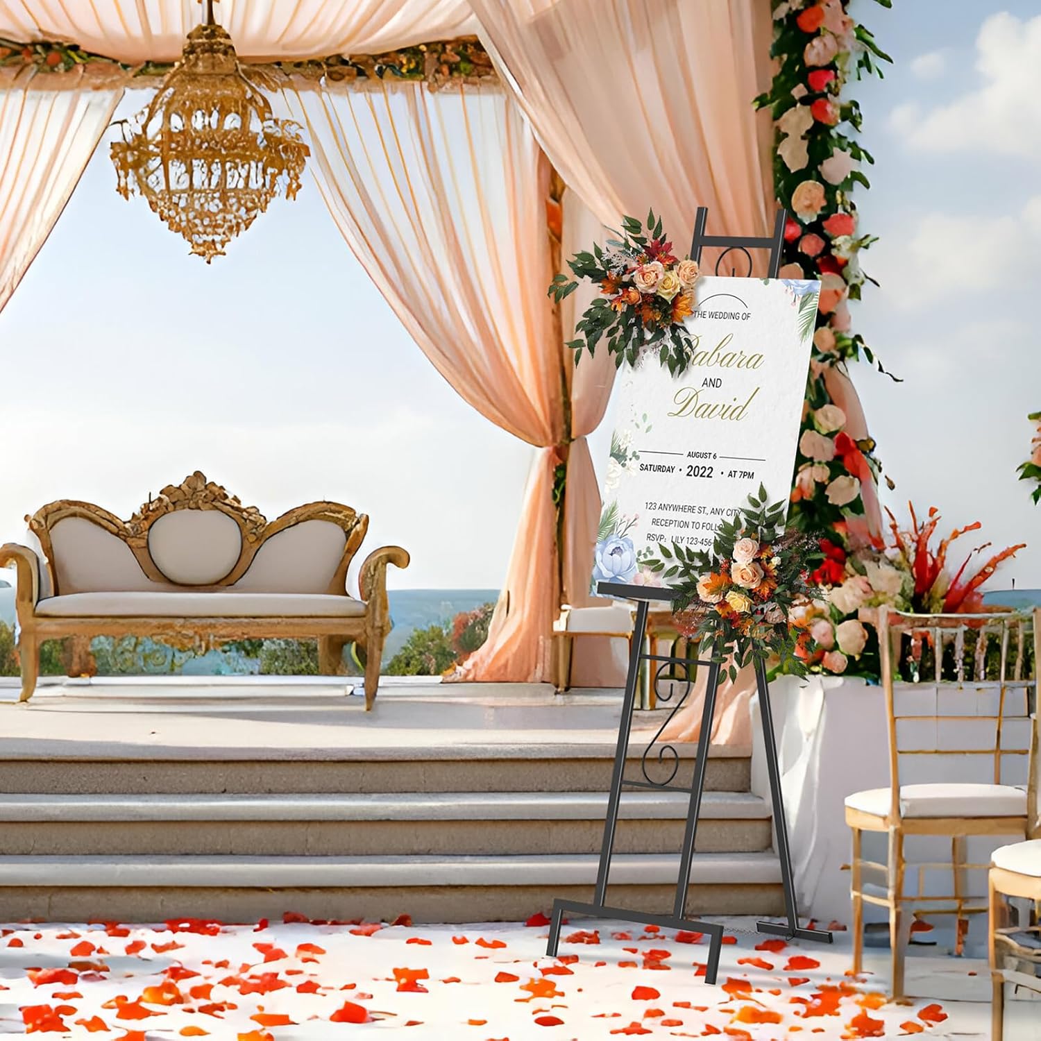 - Elegant Black Finish - The sophisticated Black finish on this metal display stand boasts clean lines and bold angles, seamlessly complementing any modern decor to showcase your artwork or wedding sign holder with style.
