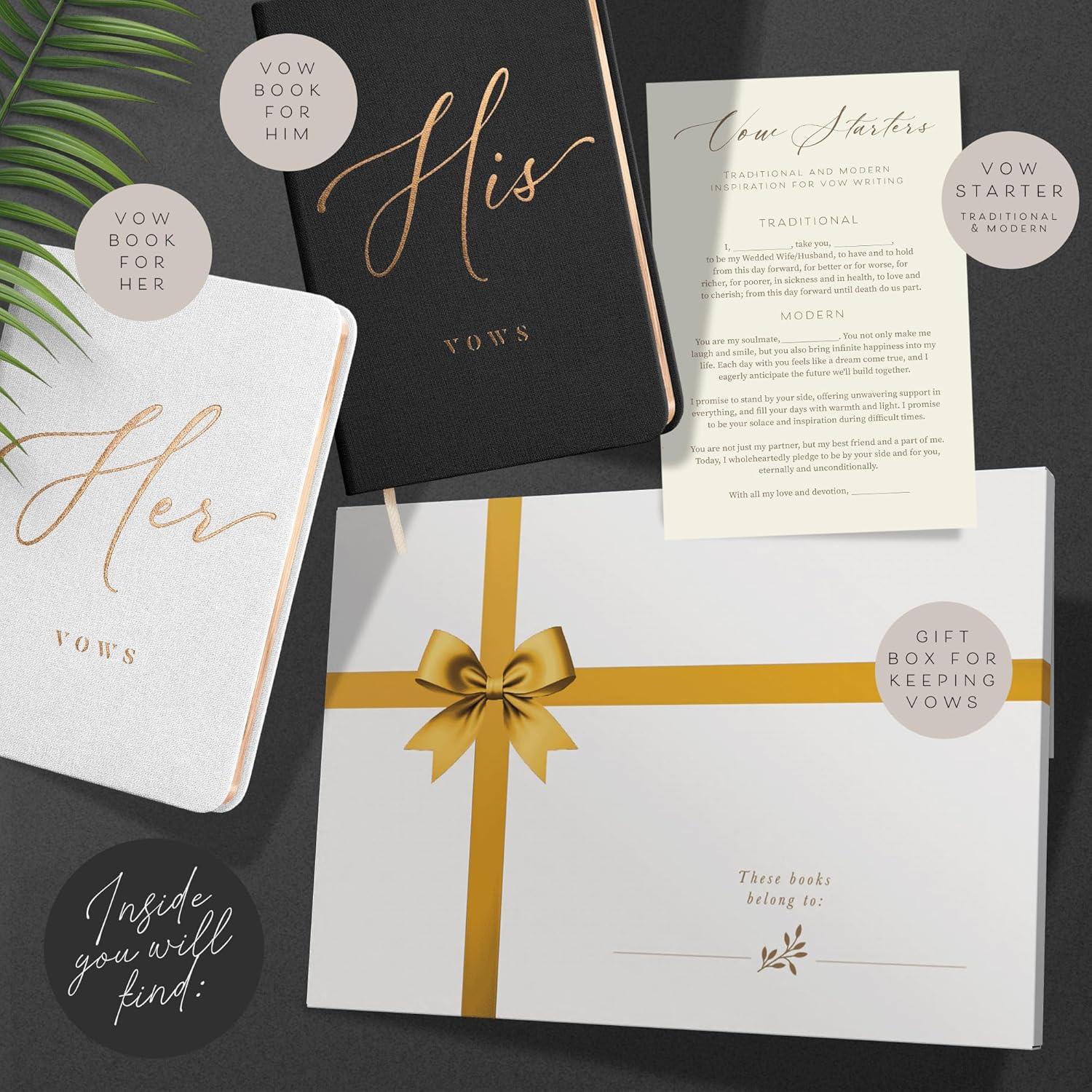 - COMPACT SIZE & GIFT-READY PACKAGING: Our wedding vows books his and hers have a convenient 5.7” x 4.1” size for easy carrying during your ceremony, with a beautiful, sturdy gift box that ensures safe transport and makes the perfect gift for weddings needs, engagements or groom gifts from bride.