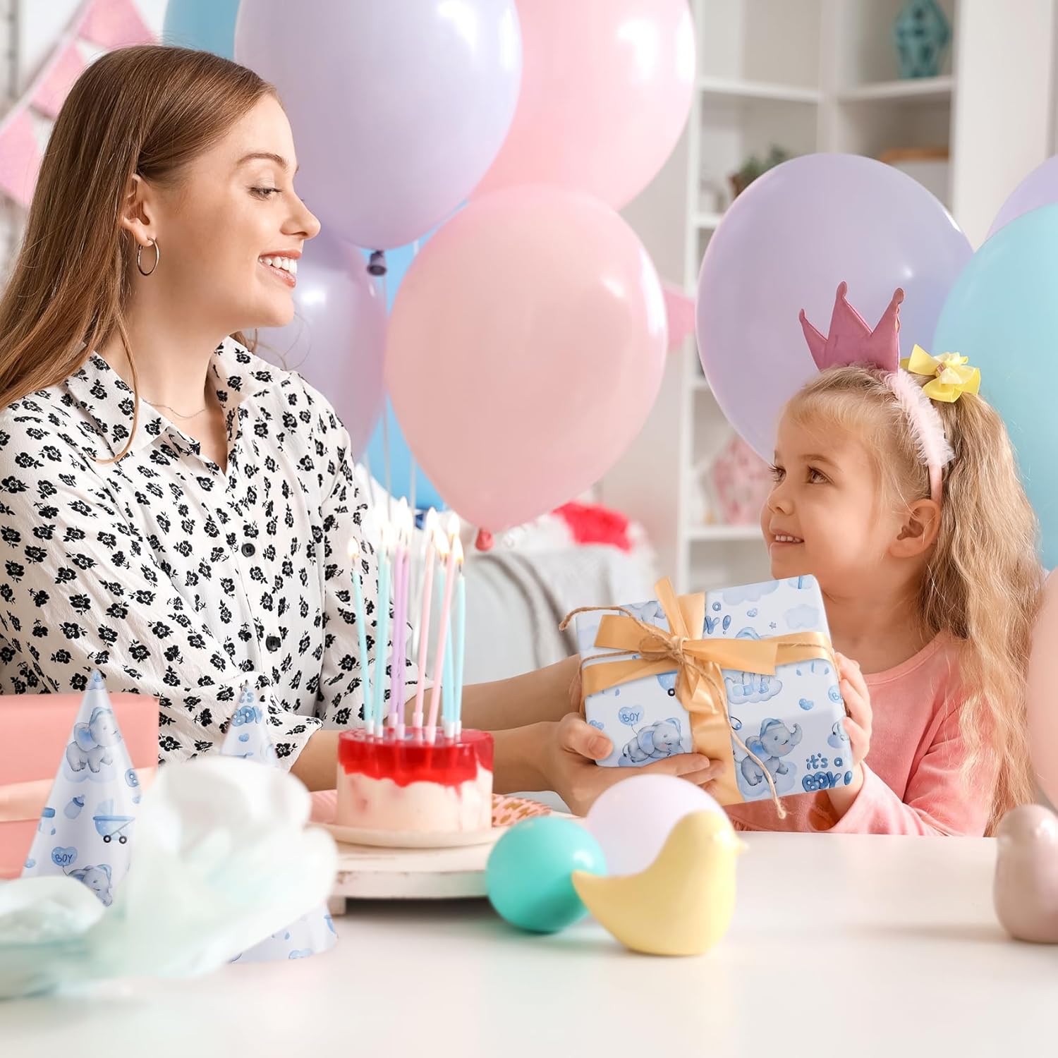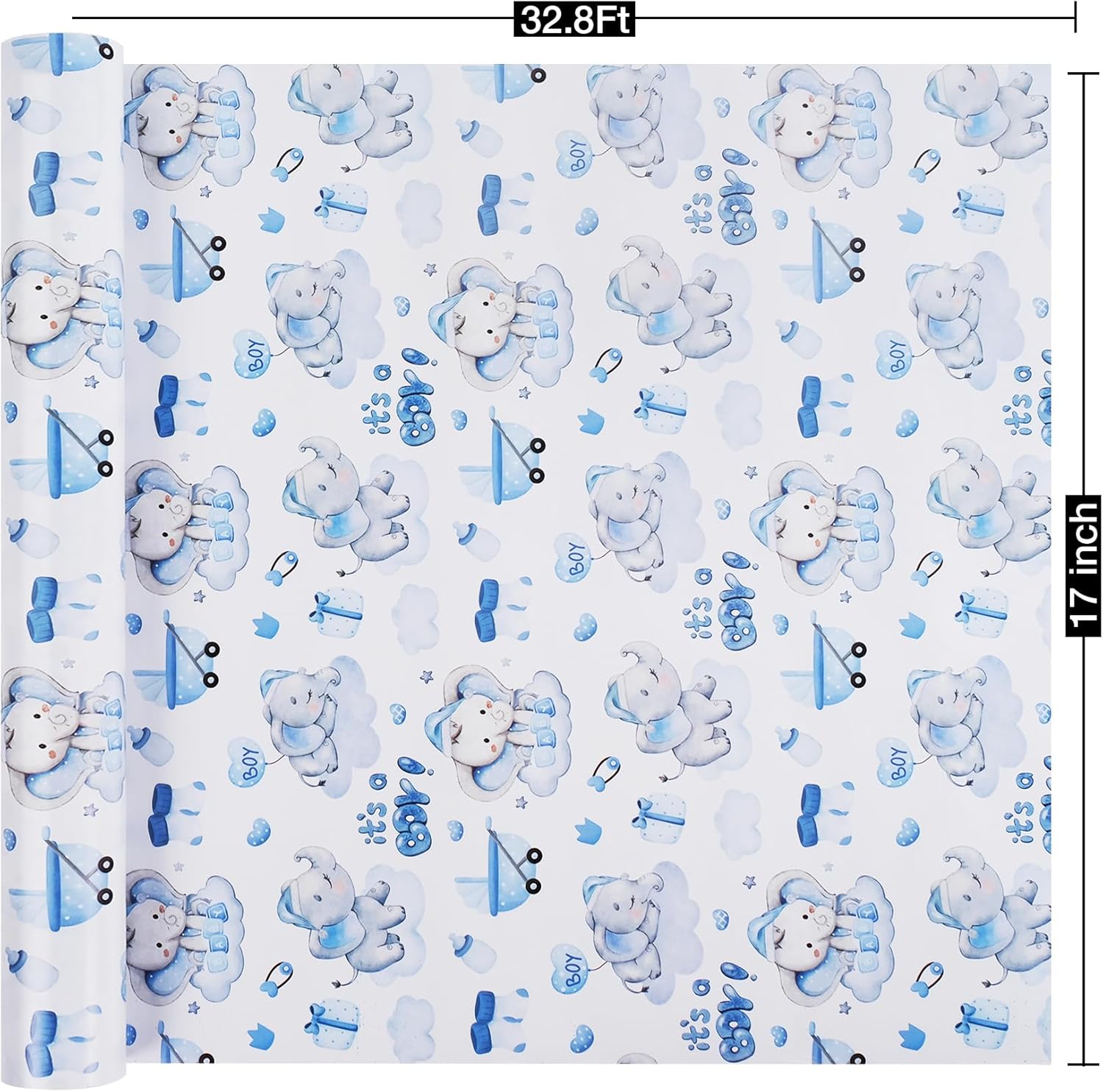 - Cute Baby Shower Design: The baby boy wrapping paper features charming blue elephant and cloud patterns, making it perfect for any baby shower celebration or birthday party for boys