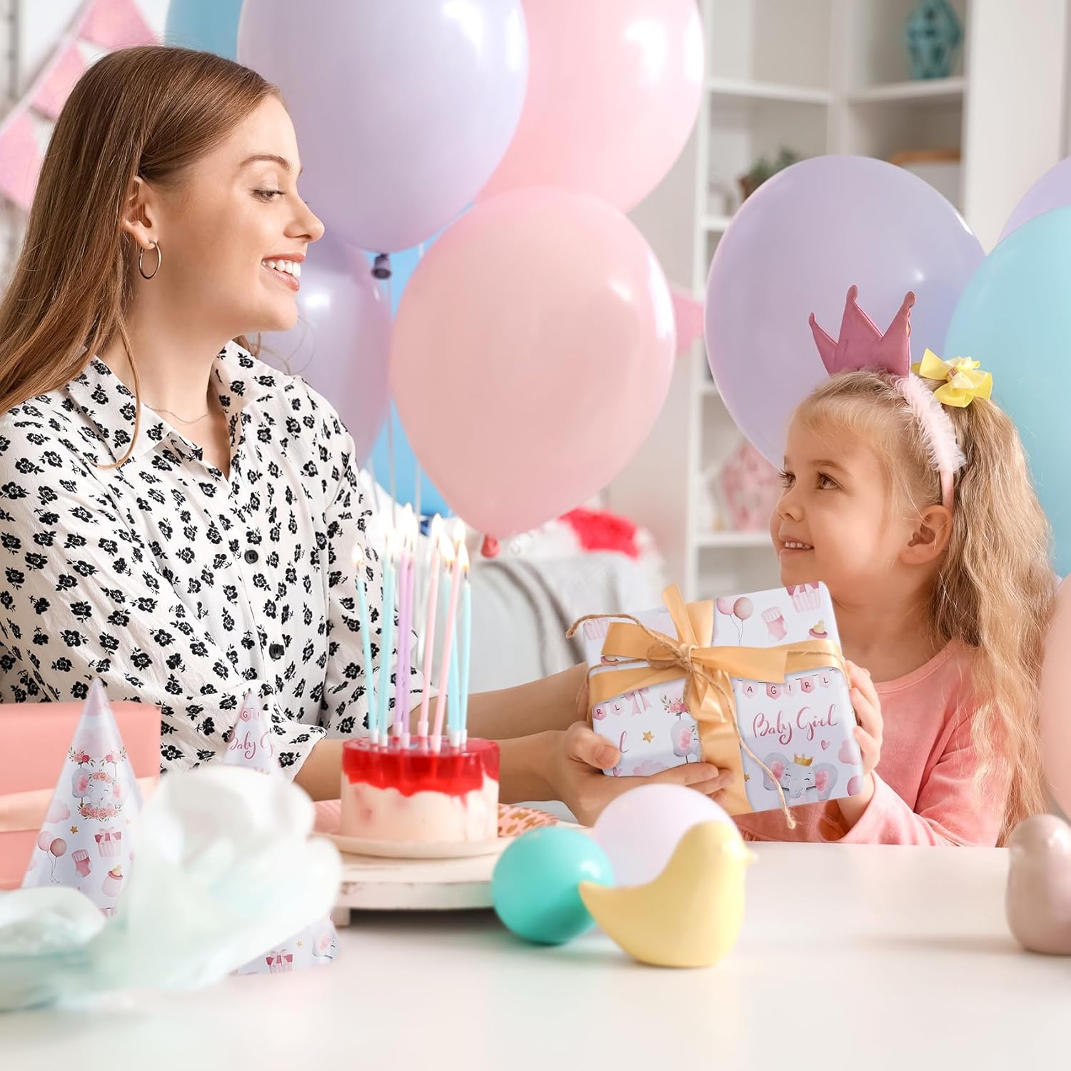 - Cute Baby Shower Design: The baby girl wrapping paper features charming pink elephant and cloud patterns, making it perfect for any baby shower celebration or birthday party for girls