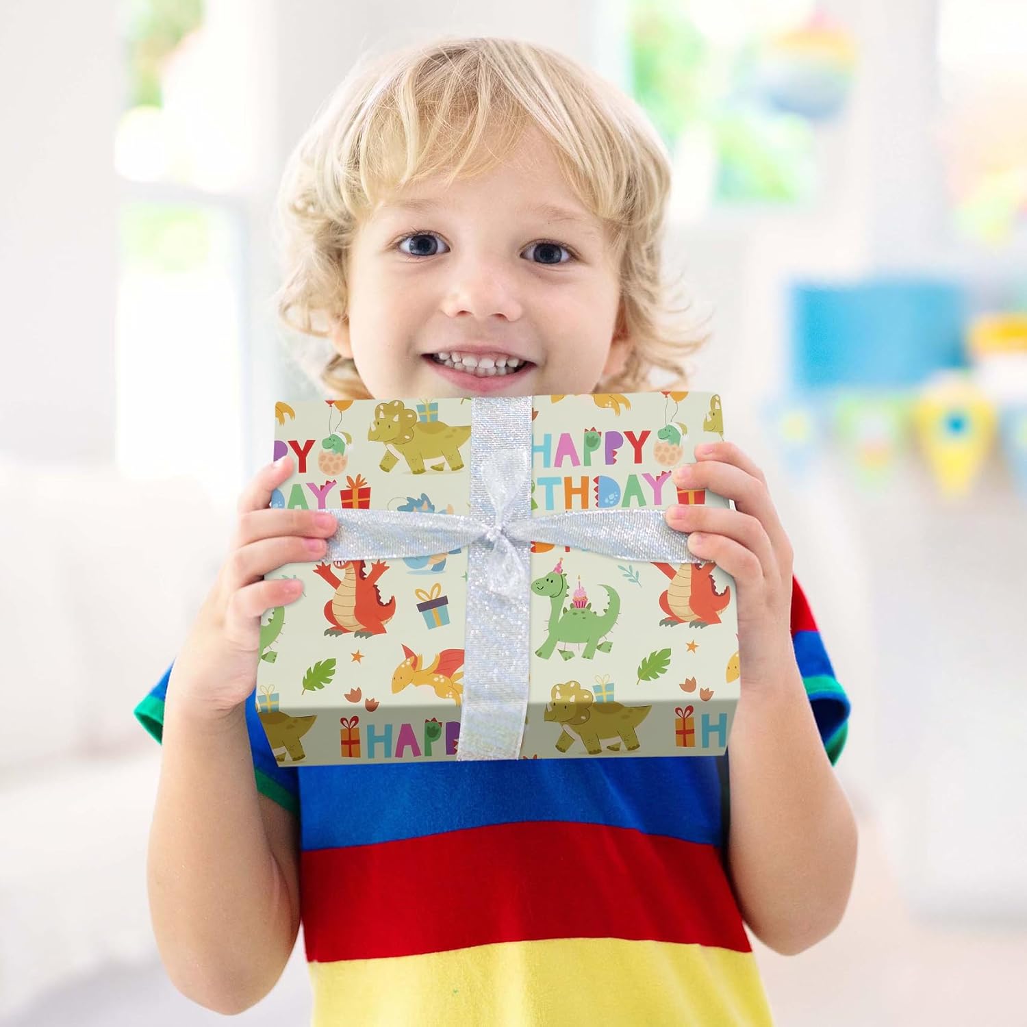 - Perfect for Dinosaur Fans :Vibrant green happy birthday wrapping paper featuring roaring dinosaurs, pterodactyls, triceratops, ideal for kids' birthdays, dinosaur-themed parties or dinosaur lovers of all ages