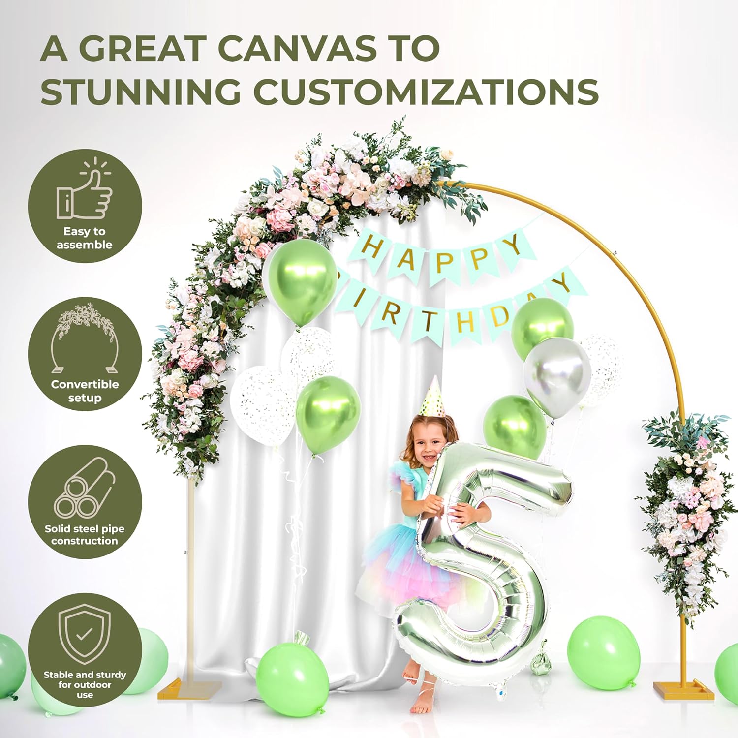 - SET UP IN SECONDS: Insert the 2 arch poles for a full circle or the 2 straight poles for an arch shape. Quick, simple, and perfect for creating stunning event backdrops with this balloon arch backdrop stand. No tools, no hassle, just quick results!
