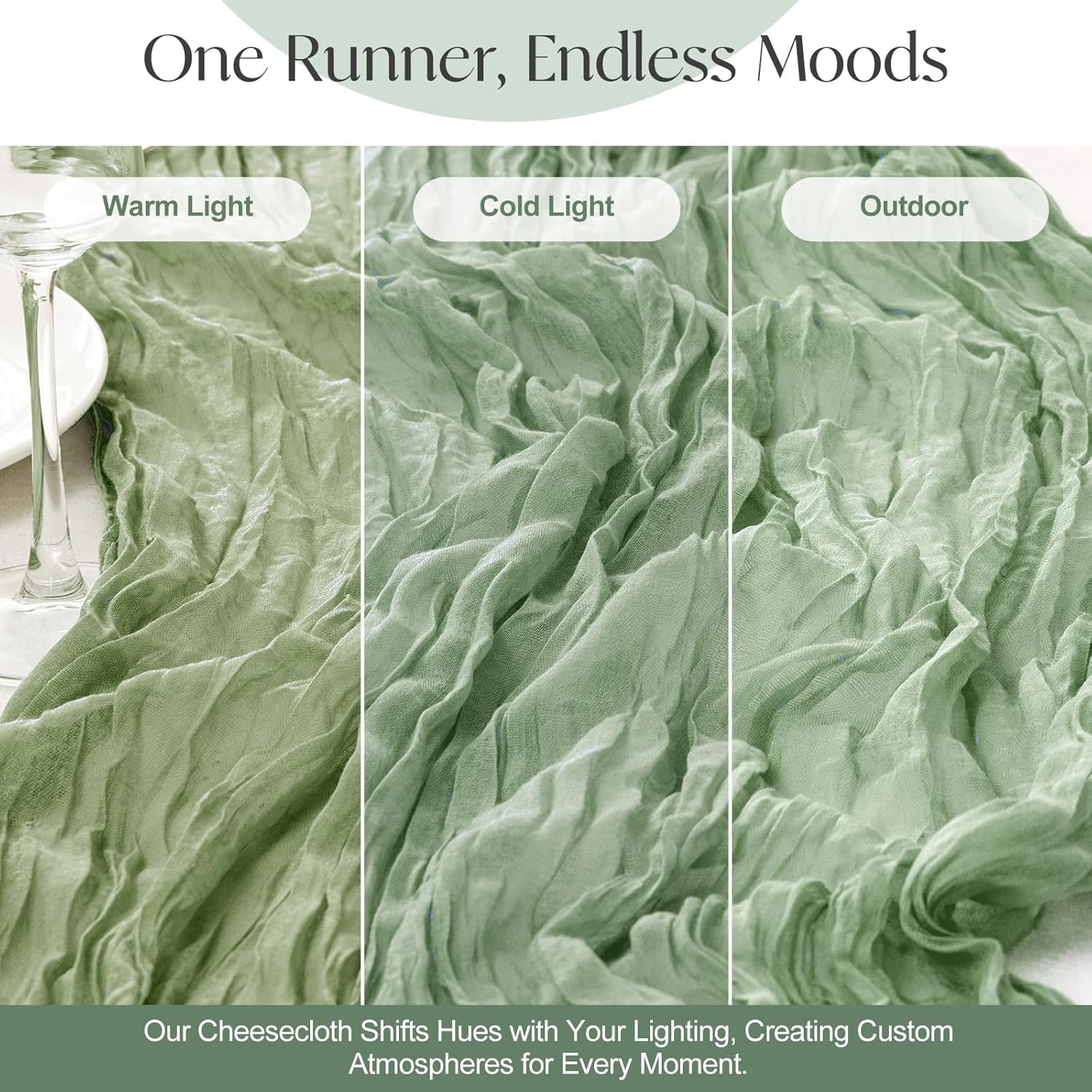 2 Pcs Sage Green Cheesecloth Table Runner - 120 inch 10FT Boho Rustic Gauze Cheese Cloth Table Runner Decor for Spring Summer Party Wedding Birthday Baby Bridal Shower Home