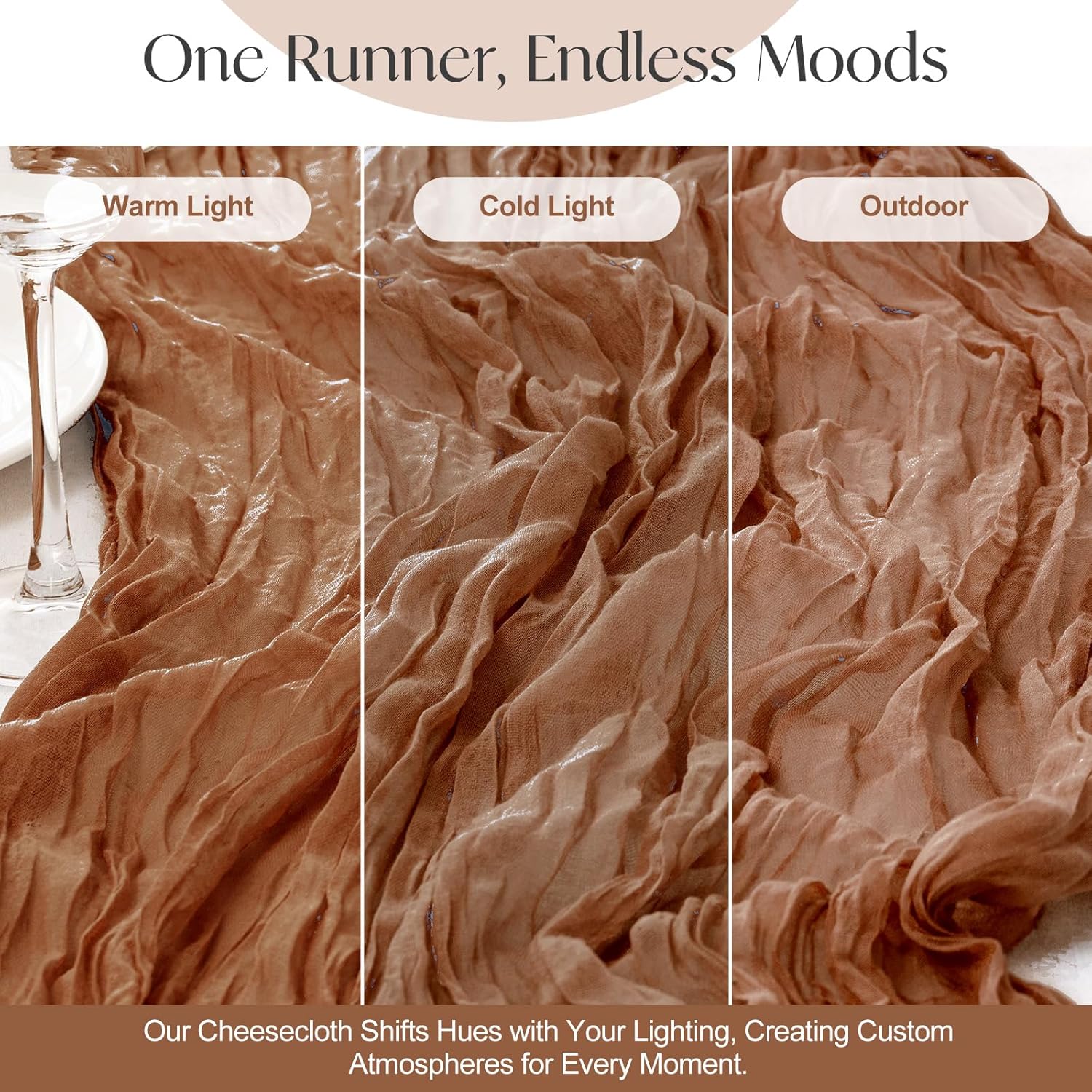 - VERSATILE FOR EVERY OCCASION---Whether decorating a boho wedding arch, a cozy holiday buffet, or an outdoor picnic, this cheesecloth table runner adapts seamlessly. Drape this table runner over banquet tables, fireplace mantels, or dessert bars to create a romantic, flowy vibe. Neutral tones and sheer finishes blend flawlessly with rustic, vintage, or modern themes.