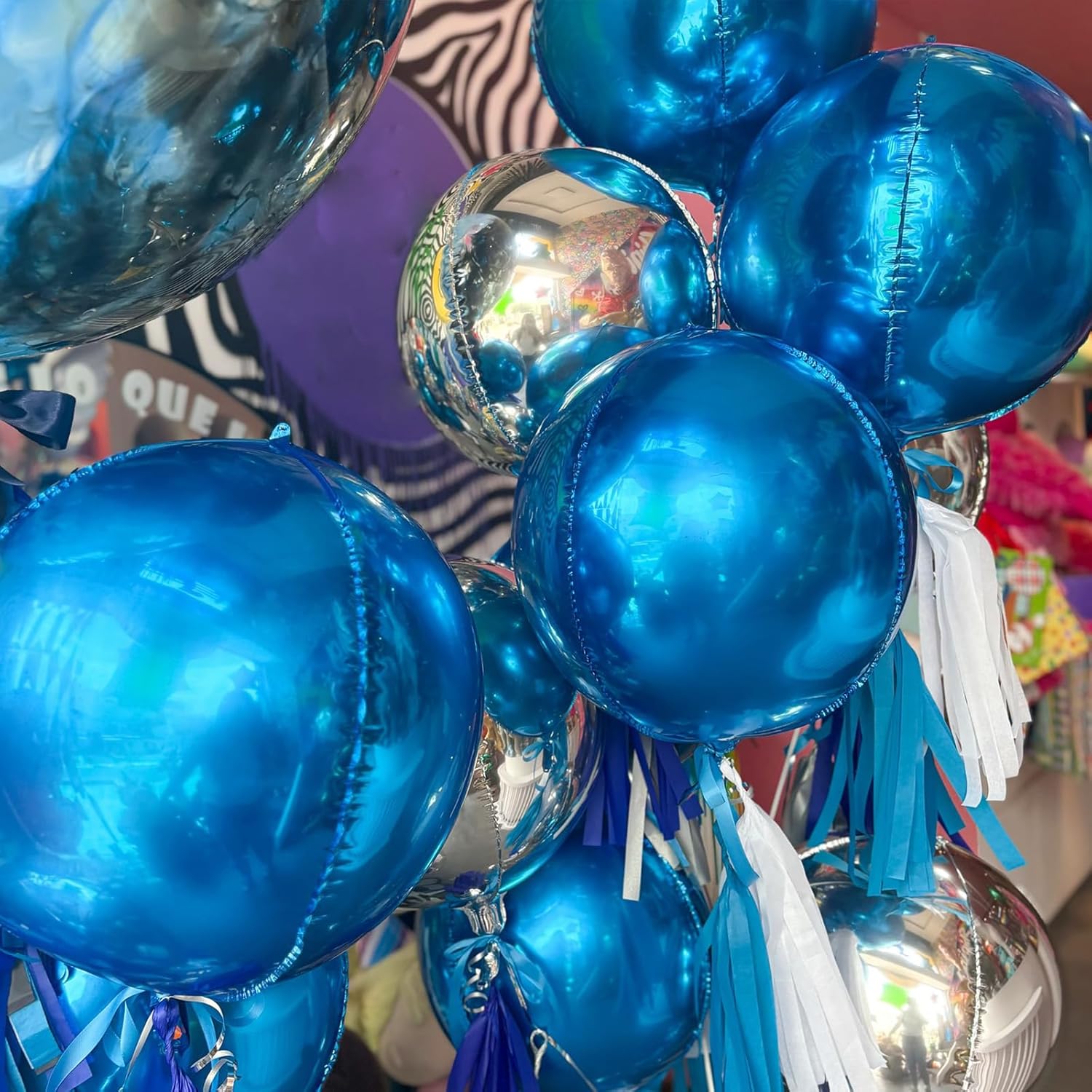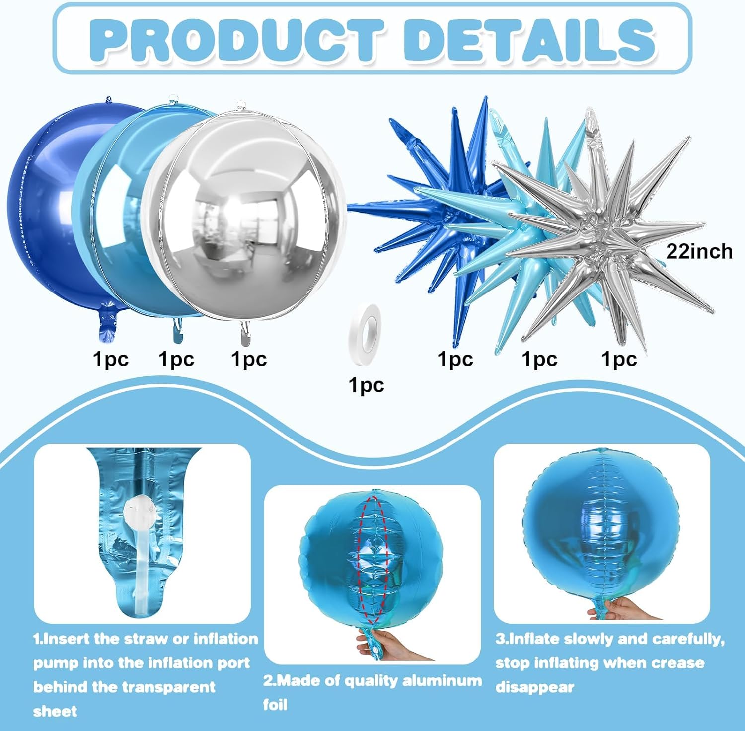 - 【Package】The package includes 3pcs 22Inch 4D ball foil balloons(blue x 1,light blue x 1,silver x 1),3pcs 22Inch star foil balloons(blue x 1,light blue x 1,silver x 1),and ribbon.These huge balloons can help you decorate your party better.