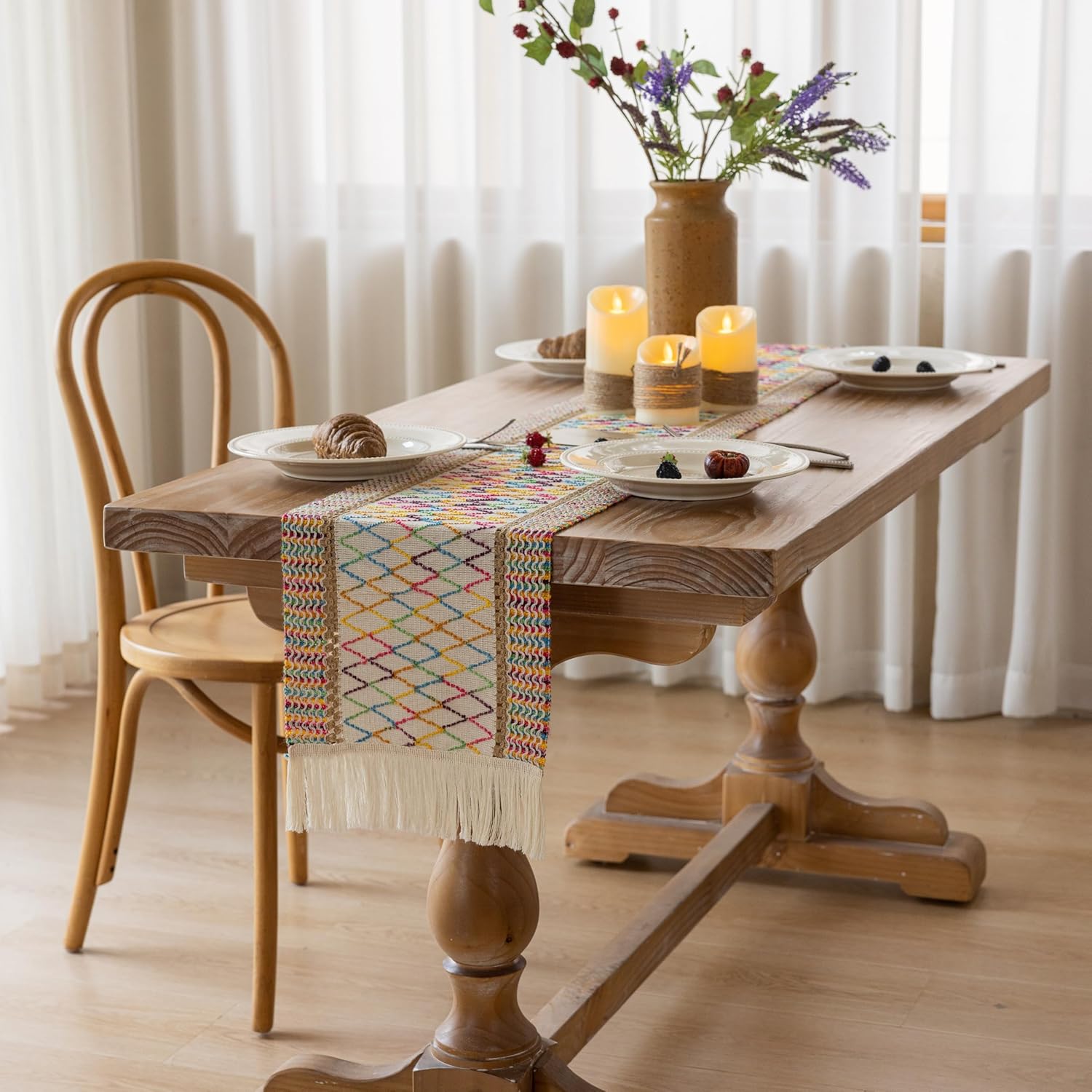 Keketo Boho Table Runner Colorful for Home Decor 12x72 Inches Farmhouse Macrame Burlap Jute Rustic Dining Kitchen Centerpiece Bohemian Decor French Country Baby Bridal Shower Decorations