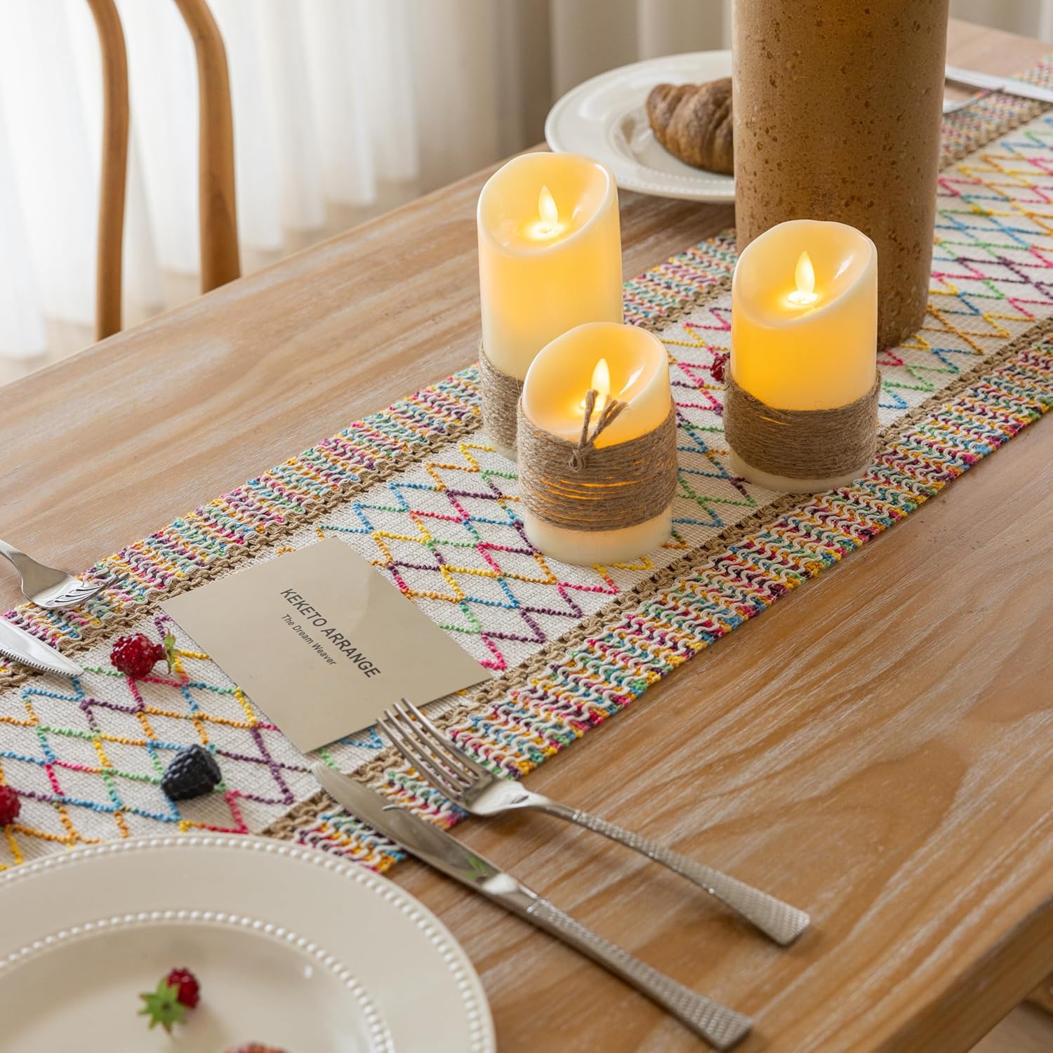 Boho Table Runner Colorful for Home Decor 12x48 Inches Farmhouse Macrame Burlap Jute Rustic Dining Kitchen Centerpiece Bohemian Decor French Country Baby Bridal Shower Decorations