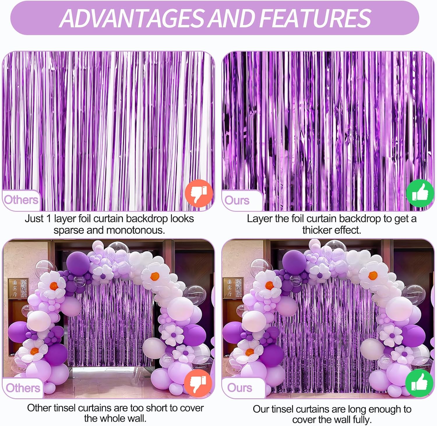 2 Pack Purple Foil Fringe Curtains Door Streamers Party Decorations 3.3 x 8.2 ft, Tinsel Curtain Fringe Backdrop for Parties, Door Fringe Birthday Streamers, Photo Booth Backdrops, Party Decor