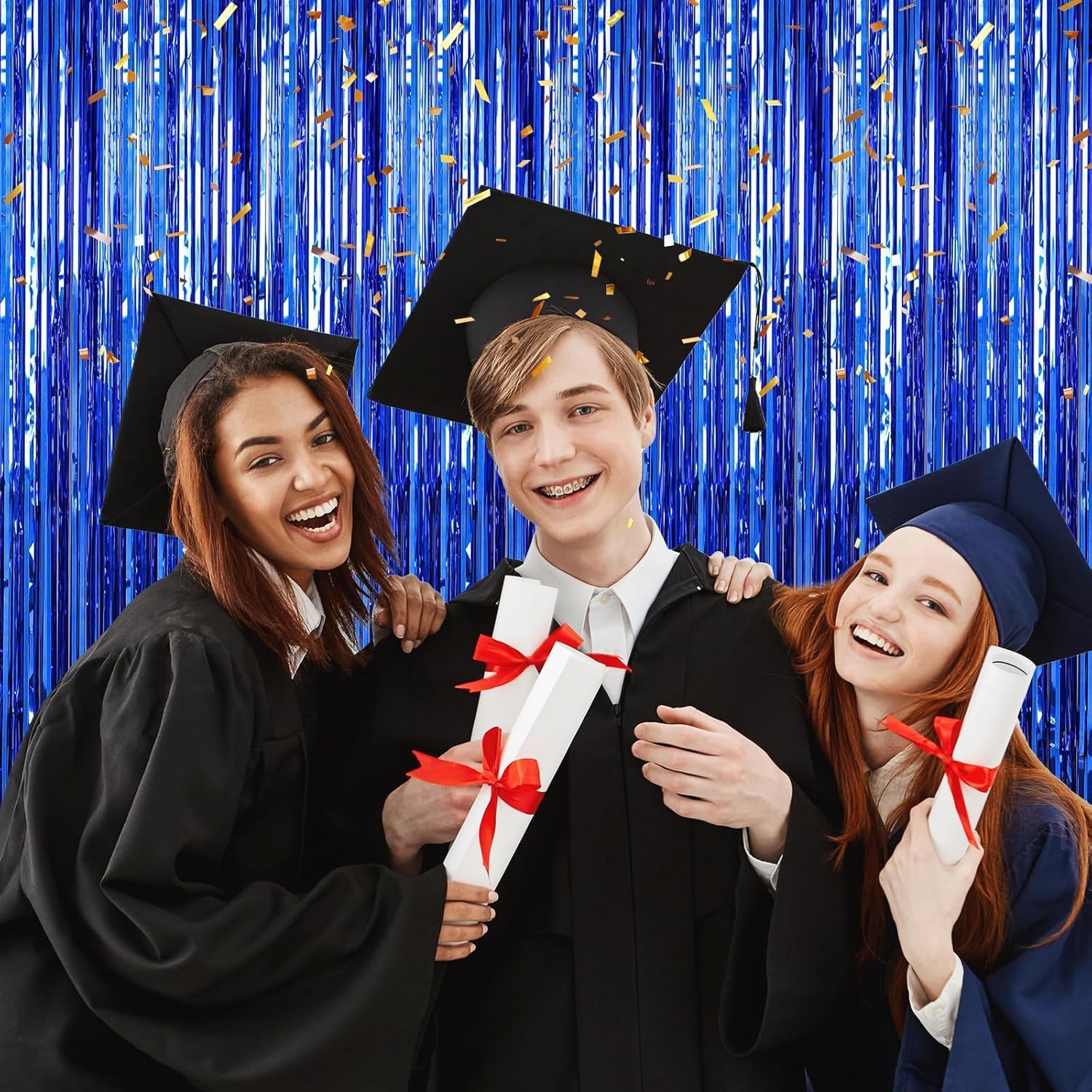 6 Pack Dark Blue Foil Fringe Curtains Streamers Party Decorations 3.3 x 8.2 ft, Blue Tinsel Curtain Fringe Backdrop for Parties, Door Fringe Birthday Streamers, Photo Booth Backdrops, Party Decor