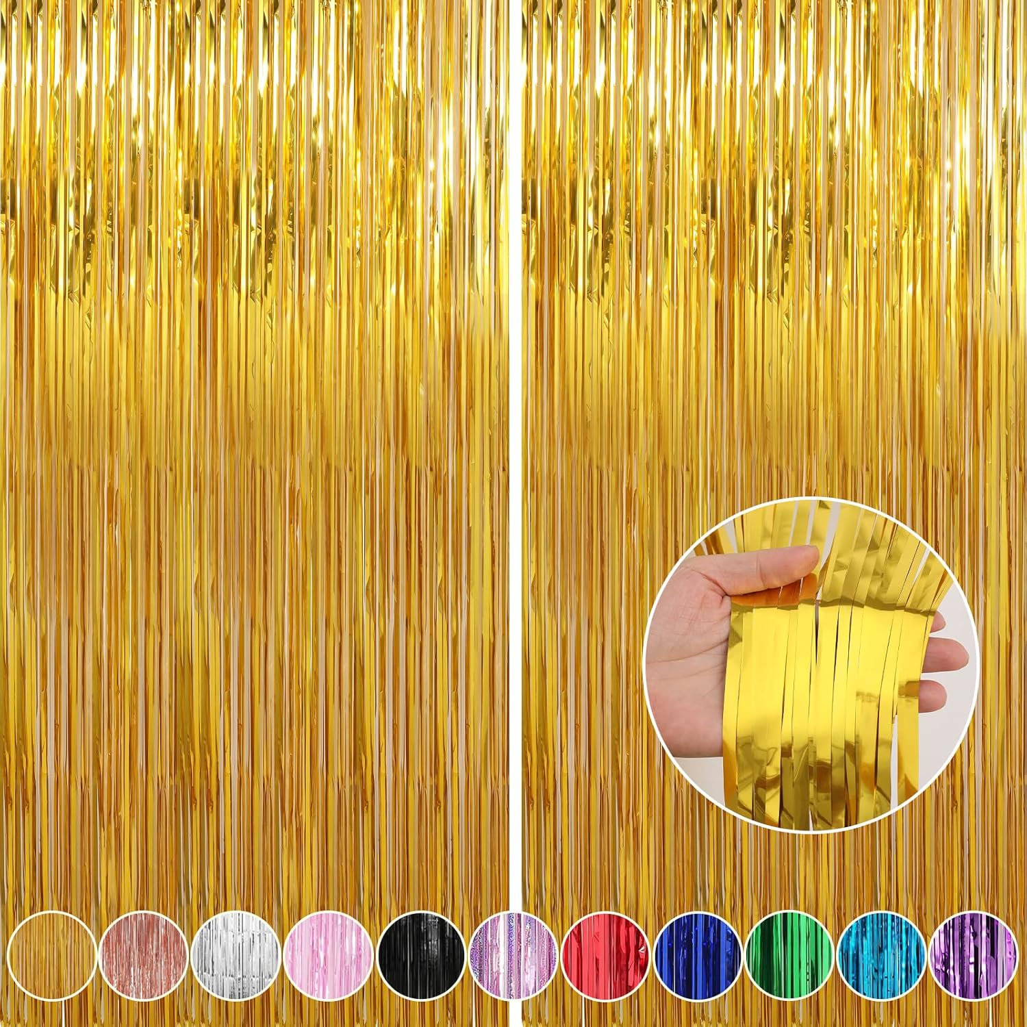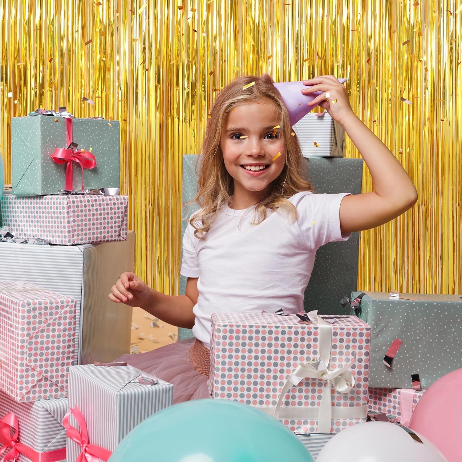 6 Pack Gold Foil Fringe Curtains Streamers Party Decorations 3.3 x 8.2 ft, Gold Tinsel Curtain Fringe Backdrop for Parties, Door Fringe Birthday Streamers, Photo Booth Backdrops, Party Decor