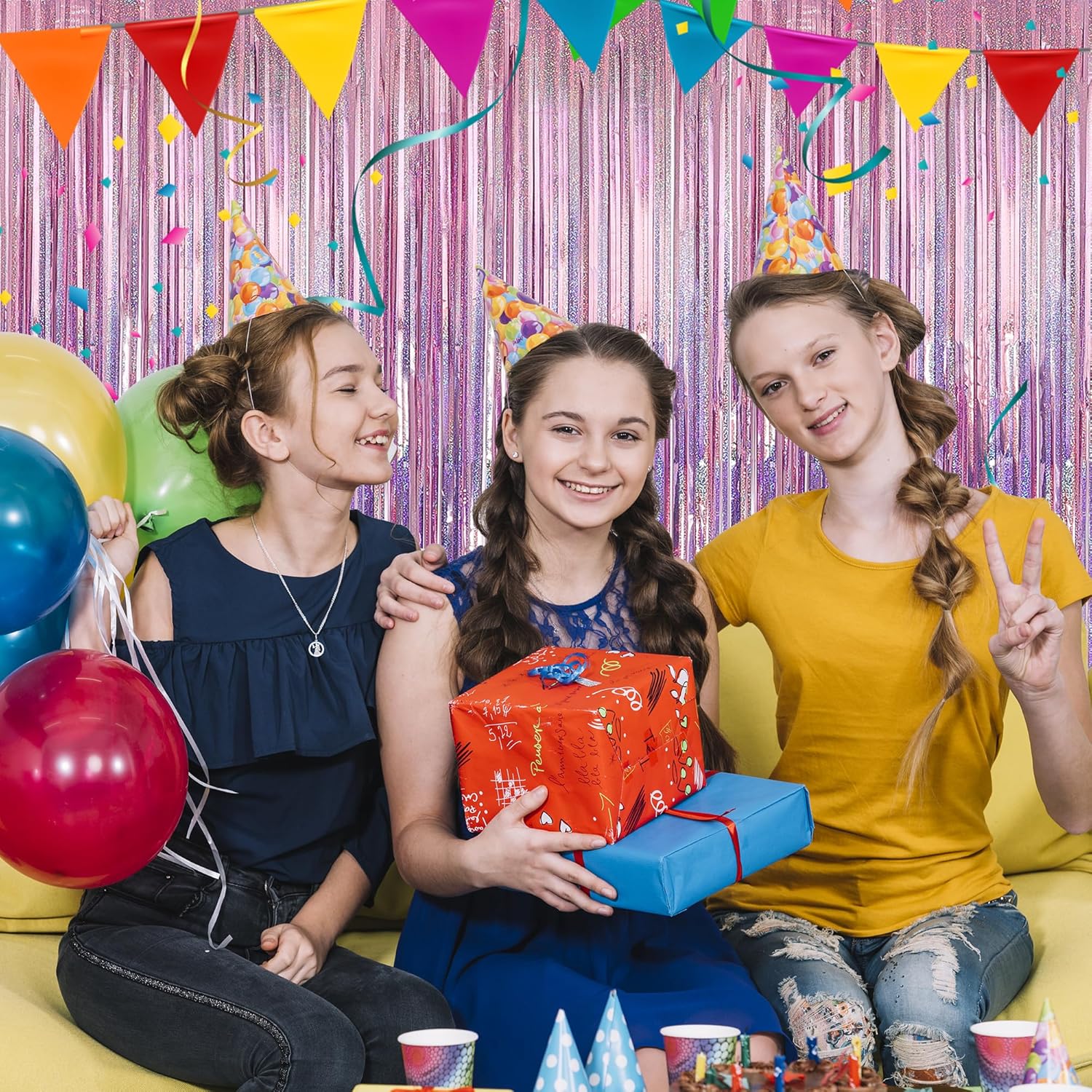 Crosize 7 Pack 3.3 x 9.9 ft Laser Pink Foil Fringe Backdrop Curtain, Streamer Backdrop Curtains, Streamers Birthday Party Decorations, Tinsel Curtain for Parties, Galentines Decor, Preppy, Photo Booth