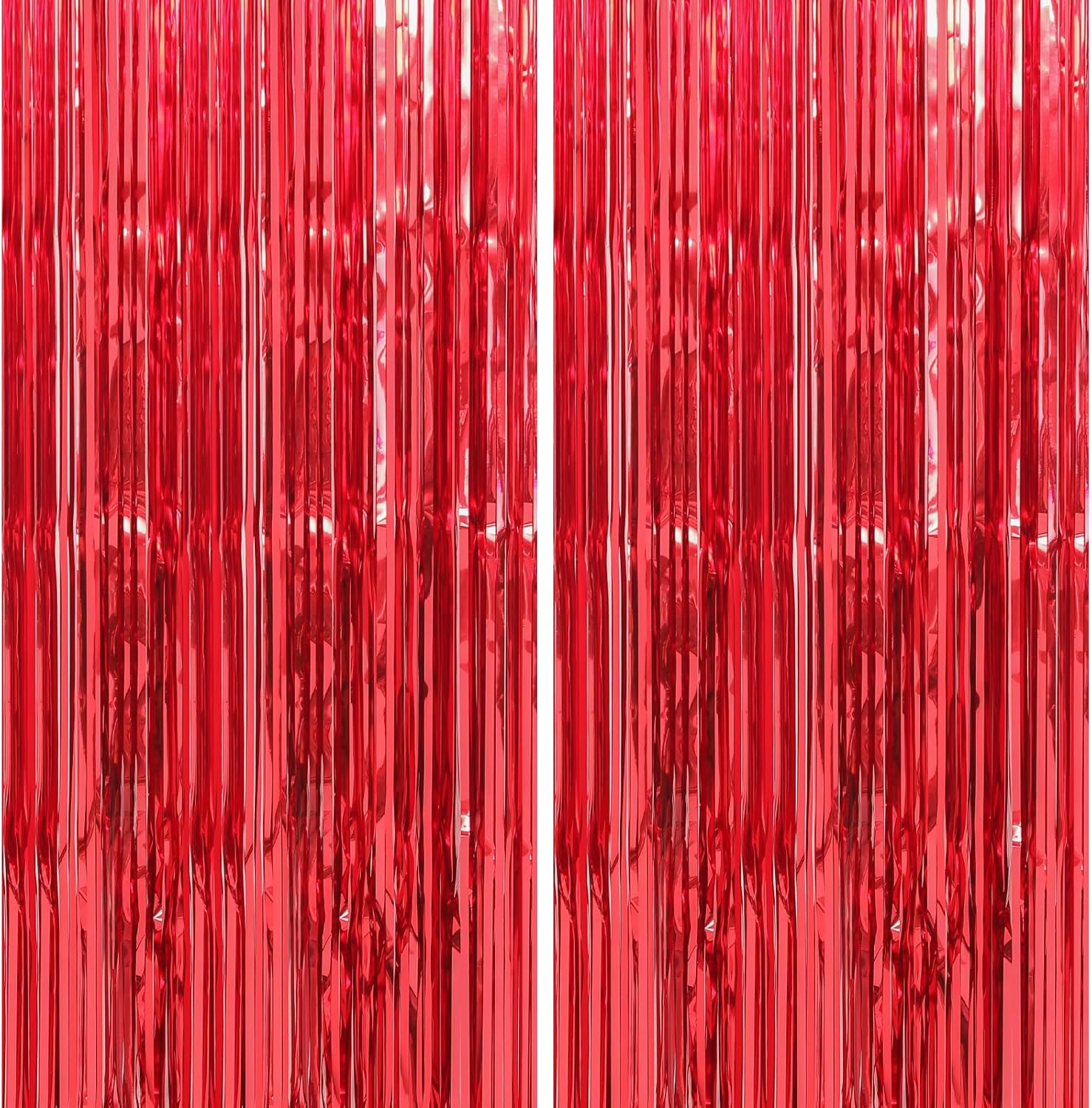 Crosize 4 Pack 3.3 x 9.9 ft Red Foil Fringe Curtains Party Decorations, Red Tinsel Curtain Backdrop for Parties, Door Streamers, Glitter Streamer Fringe Backdrop for Birthday Decoration