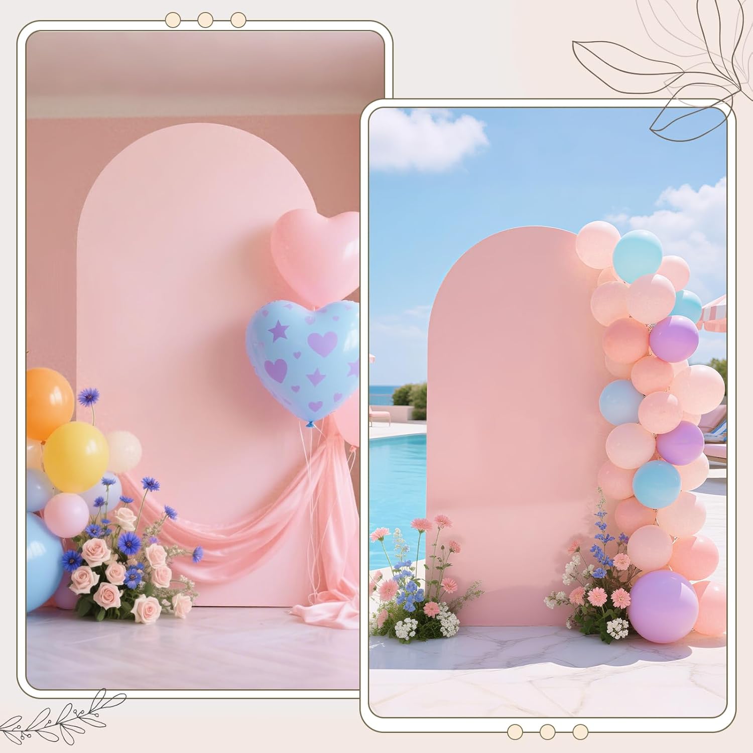 Ledido Wedding Arch Backdrop Cover 6FT 7.2FT Arch Covers 2Set Fitted Stretchy Spandex Round Top Stand Backdrop Cover for Wedding Banquet Ceremony Birthday Party Baby Shower Event Decoration,Pink