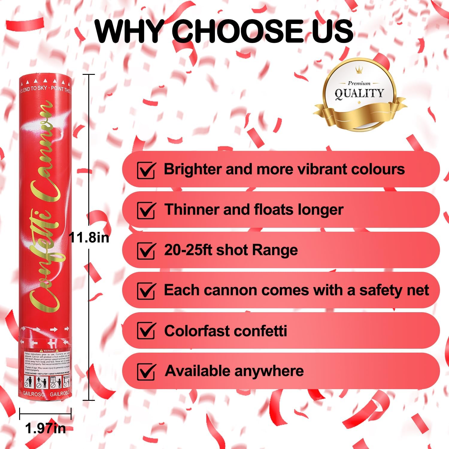 - Specifications: You will receive 6 packs of 12 inch confetti cannons. Each confetti cannon is filled with red confetti for all parties.