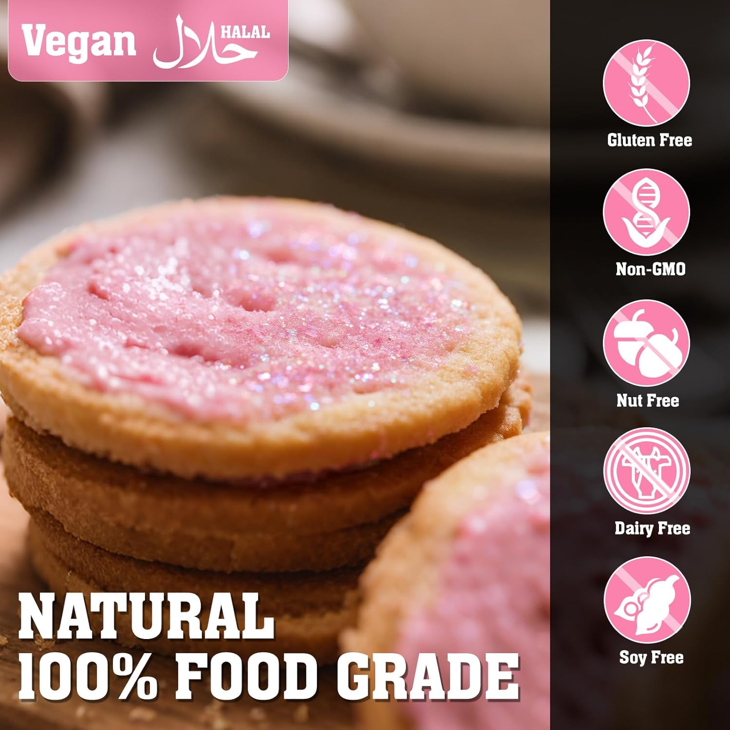 - 【Vibrant Colors & Party Favorite】: Our pink edible glitter delivers a dazzling metallic or pearl finish that instantly elevates desserts and beverages—from wedding cakes to lattes and holiday treats! Ultra-fine powder blends smoothly for a pro-level shimmer without clumping, perfect for bakers styling glitter cupcakes, Starbucks-inspired drinks, cocktail rimming, or DIY desserts.