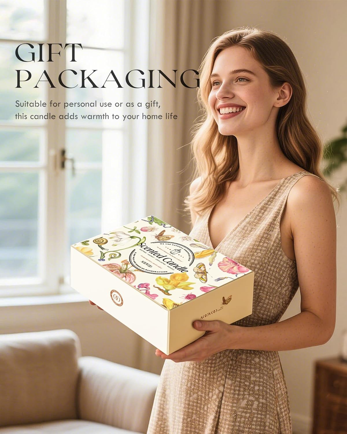 - Perfect for Gifting: No extra wrapping needed. Presented in an elegant gift box with beautifully crafted glass jar candles and gold foil labels, boasting an array of delightful scents that make this gift truly special.