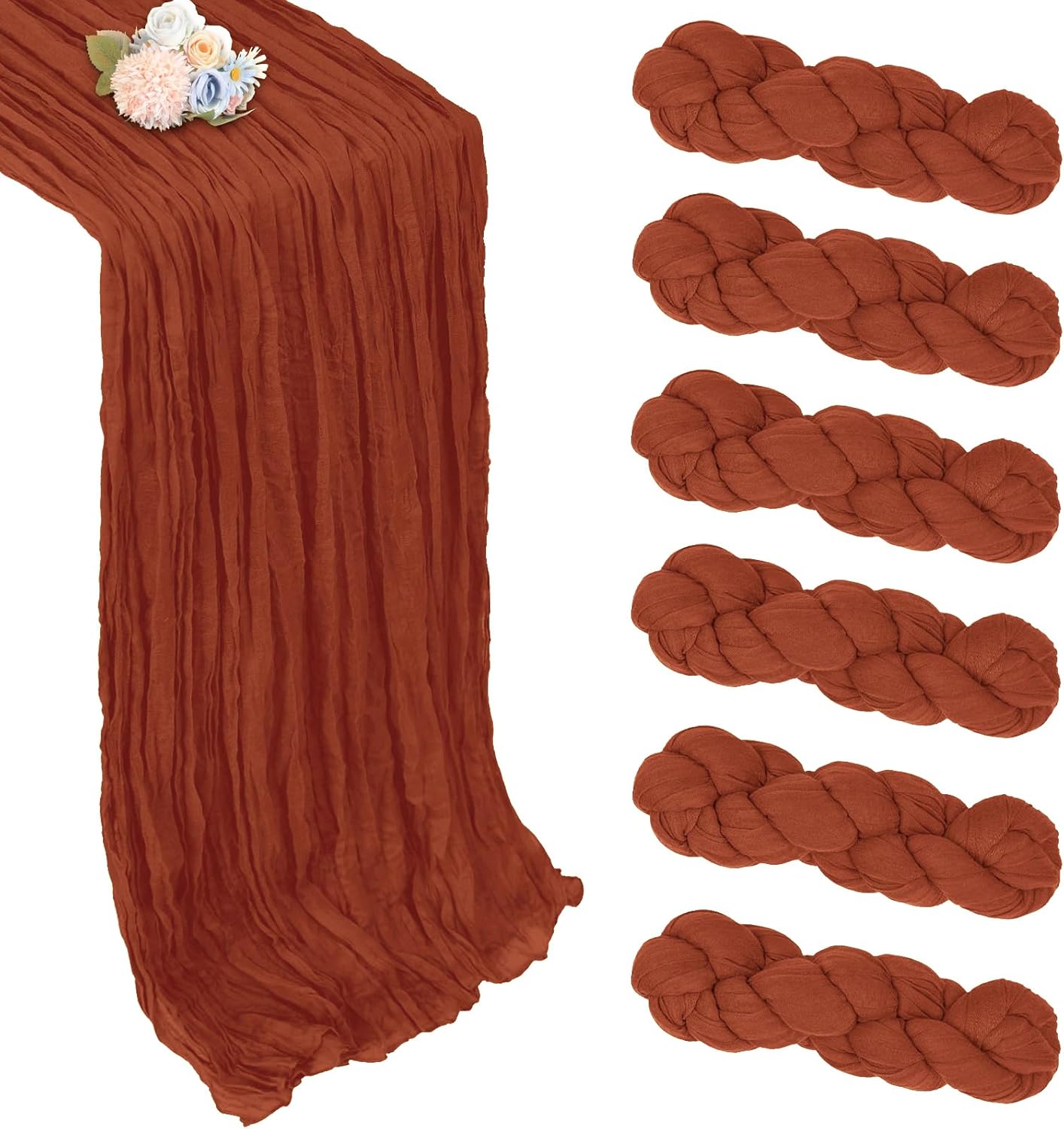 - 【Package Included】You Will Be Delighted To Receive 6 Packs Of Terracotta Table Runner. The Terracotta Cheesecloth Table Runner Quantity Is Abundant, Fully Meeting Your Daily Use And Various Event Needs. The Size Of The Table Runners Is 35 x 120 Inch, Which Can Perfectly Fit Tables Or Chairs In Various Event Scenarios. Besides, We Have Carefully Prepared A Wide Range Of Color Options For You, Which Are Highly Suitable For Creating A Romantic And Extraordinary Atmosphere.