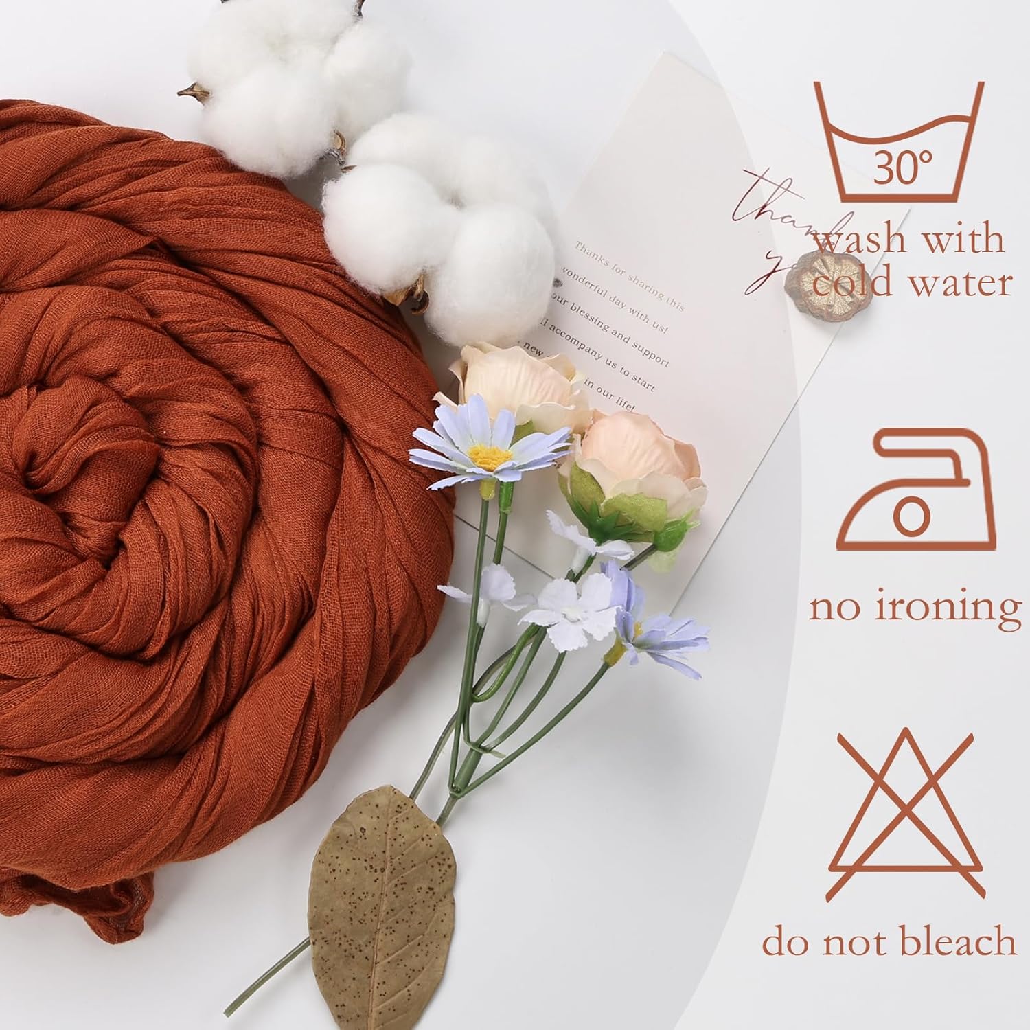 - 【Care Instructions】For The Vintage Terracotta Cheese Cloth Table Runner, It Is Recommended That You Put Them In A Laundry Bag For Machine Washing Or Hand Wash With Cold Water. To Preserve The Wrinkled Texture Of The Gauze Table Runners, Please Do Not Iron Or Bleach Table Runners. Also, Avoid Direct Exposure To The Sun To Prevent Fading, So That They Can Be Used For A Long Time.
