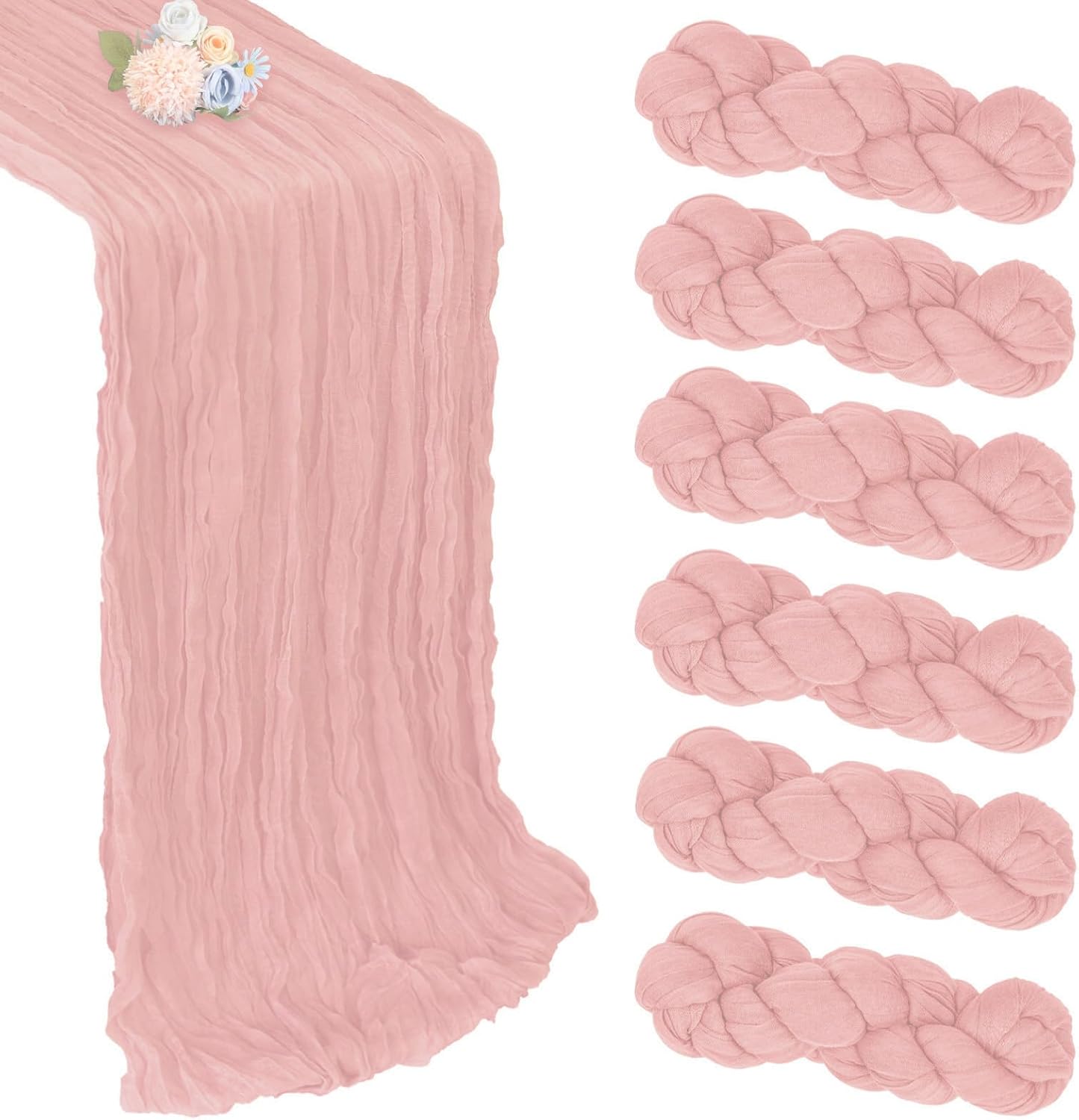 6 Pack Dusty Pink Cheesecloth Table Runner 10ft Boho Gauze Fabric Cheese Cloth Table Runner 35 x 120 Inch Rustic Sheer for Romantic Wedding Decor Baby Shower Party Table Centerpiece Decoration