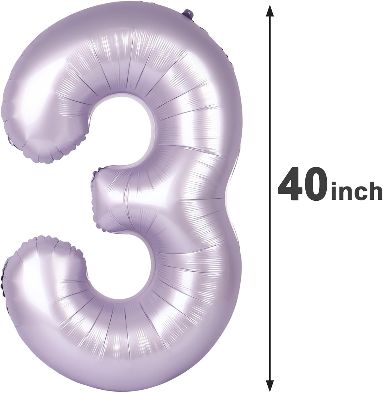 - 1.Make Party Charming with Lavender Number Balloon:You will receive an uninflated 40 inch 3 balloon number.Big number balloons are always best statement of romance surprise. Lilac birthday balloons symbolize vitality exoticism,adding glamour to birthday parties. Bright metallic lavender huge size make party decorations a highlight of special parties. Choose one or more numbers from 0-9 large number balloons,and use 3 13 23 30 33 53 lilac party balloons to create a lively charming party!